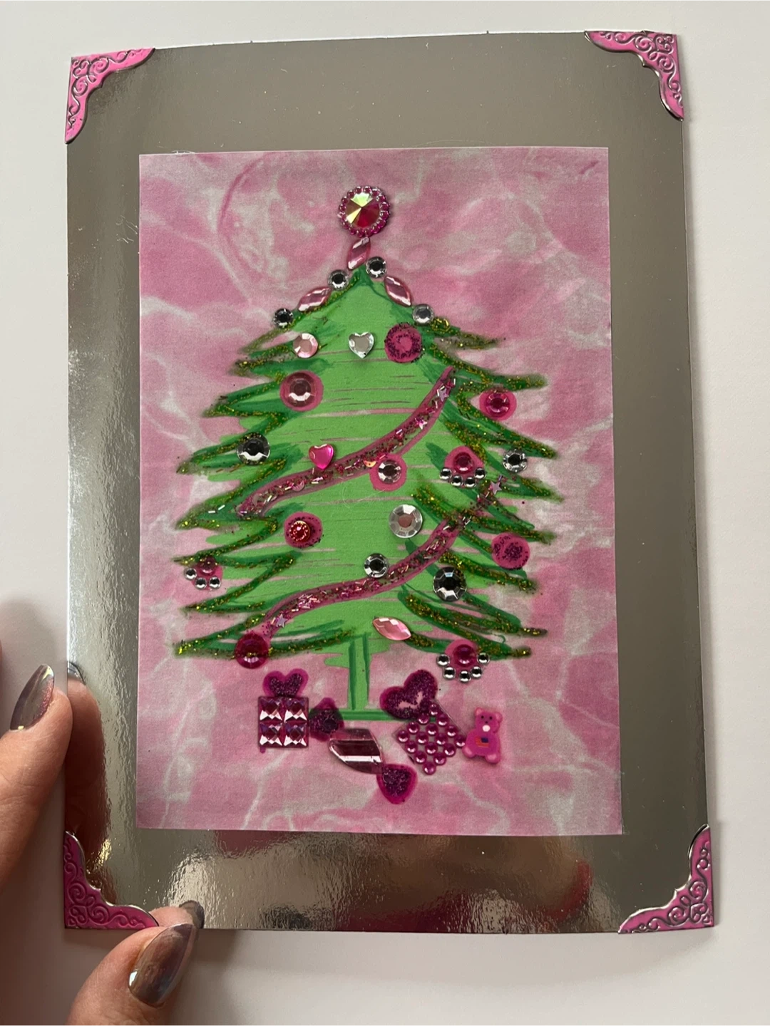 GlimmerTree Collection – Hand-Embellished Mini Holiday Art with Metallic Edges