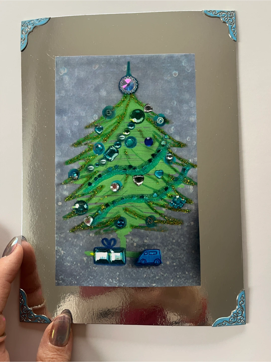 GlimmerTree Collection – Hand-Embellished Mini Holiday Art with Metallic Edges