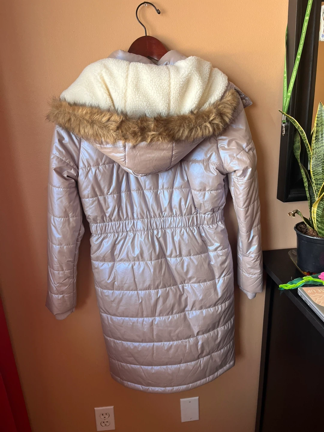 This Joe Fresh puffer coat is size XL- 14 yrs. It's a long, insulated jacket with a faux fur-trimmed hood. Great for keeping warm during colder weather! Brand new never worn. Can be worn as an XS women’s.