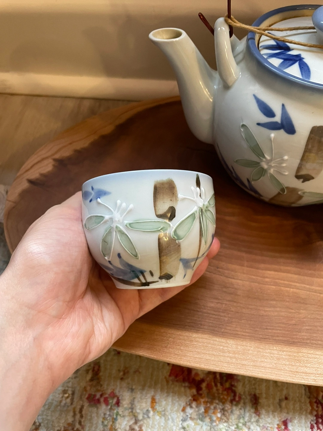 Vintage Ceramic Japanese Teapot with 3 Cups