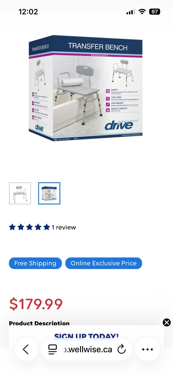 This Drive Medical transfer bench is designed to help you safely get in and out of the bathtub. It's lightweight and has adjustable height legs for a perfect fit. The splash guard protection helps keep your bathroom floor dry.