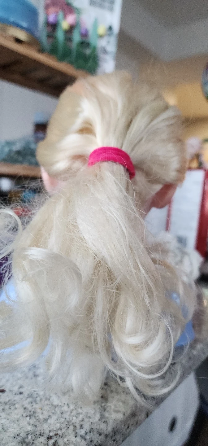 This is a Disney Frozen Elsa styling head with blonde hair. It features Elsa's likeness from the movie. Perfect for imaginative play and hairstyling practice!