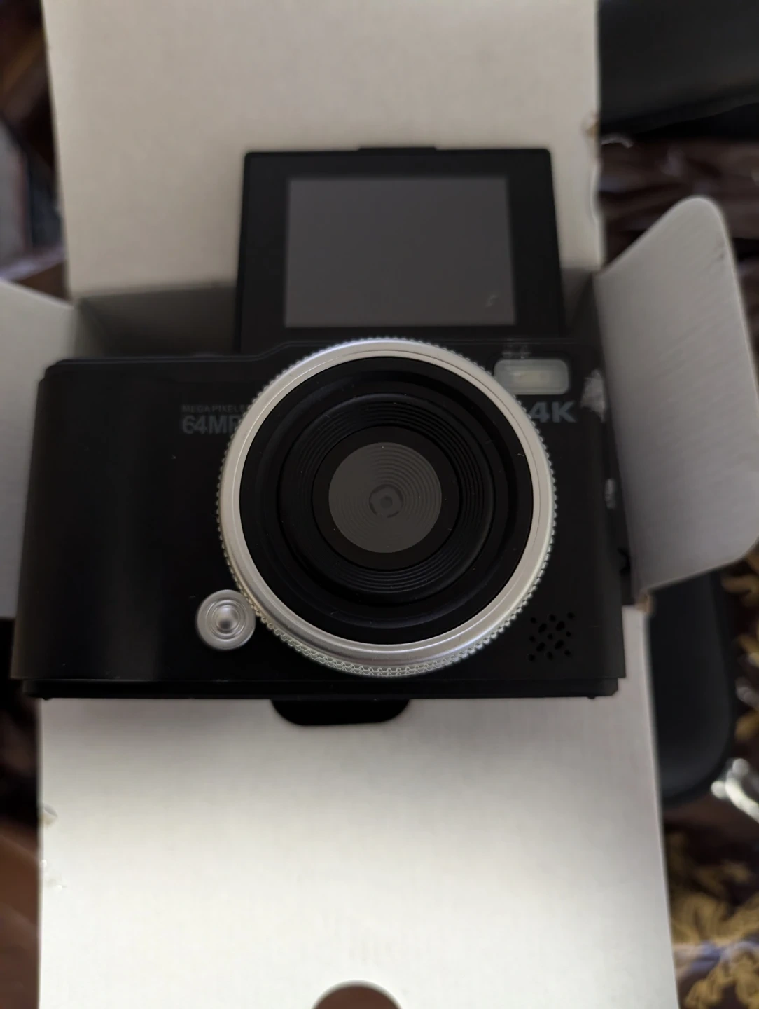 This digital camera captures stunning 4K Ultra HD video and 64MP photos. It features auto focus for sharp images. This would be great for capturing memories on the go!