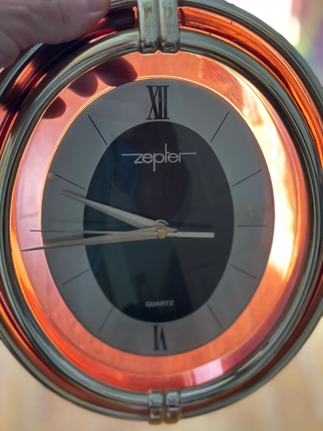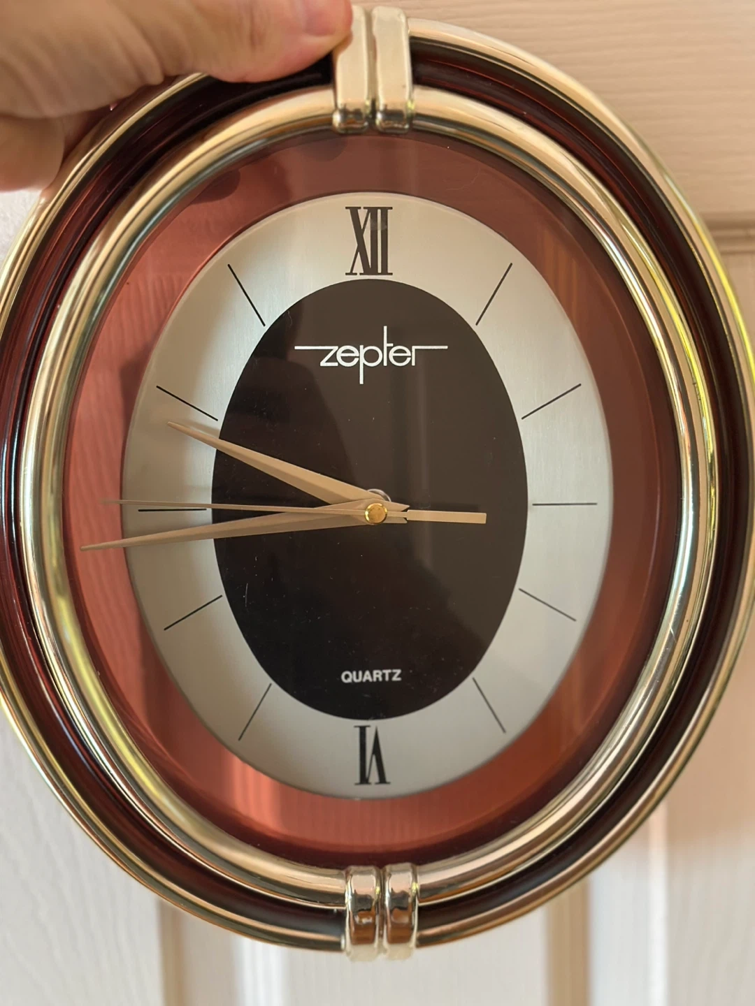 Selling a Zepter Quartz wall clock! It has a unique design with Roman numerals and a sleek look. It would be a great addition to any room