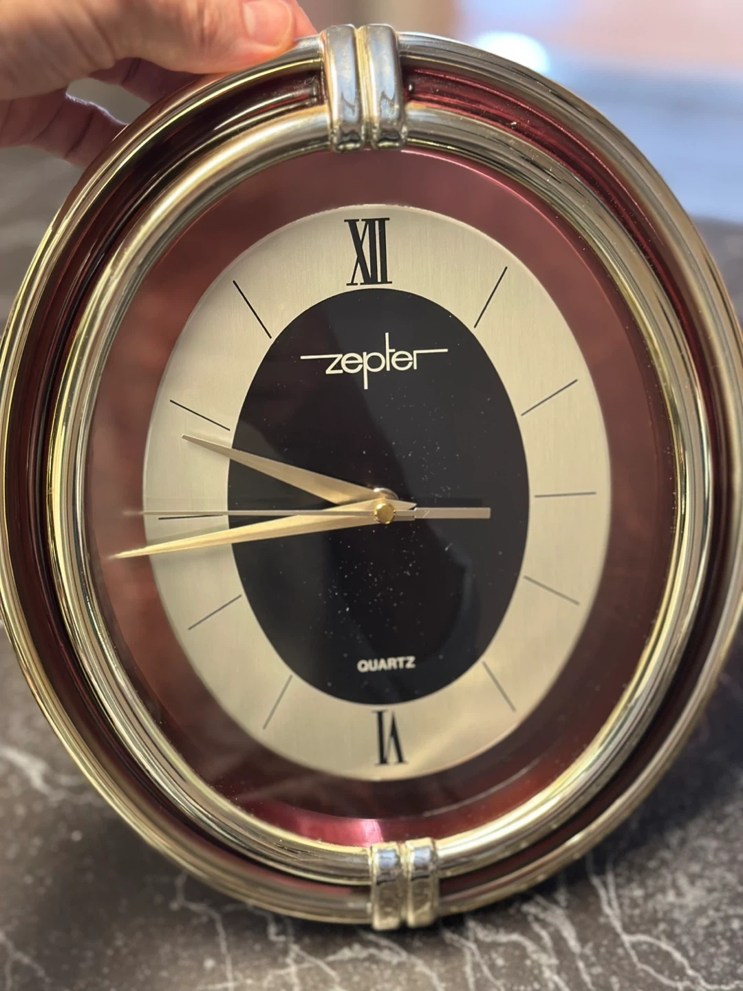 Selling a Zepter Quartz wall clock! It has a unique design with Roman numerals and a sleek look. It would be a great addition to any room