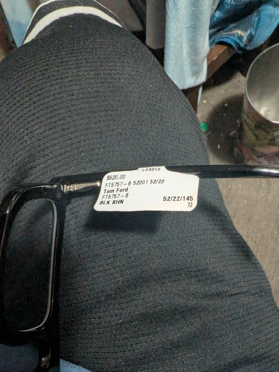 Selling a pair of Tom Ford glasses. The model is FT5757-B, size 52/22/145. The frames are black. Originally bought for $620