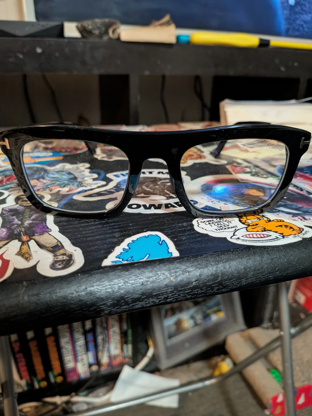 Selling a pair of Tom Ford glasses. The model is FT5757-B, size 52/22/145. The frames are black. Originally bought for $620