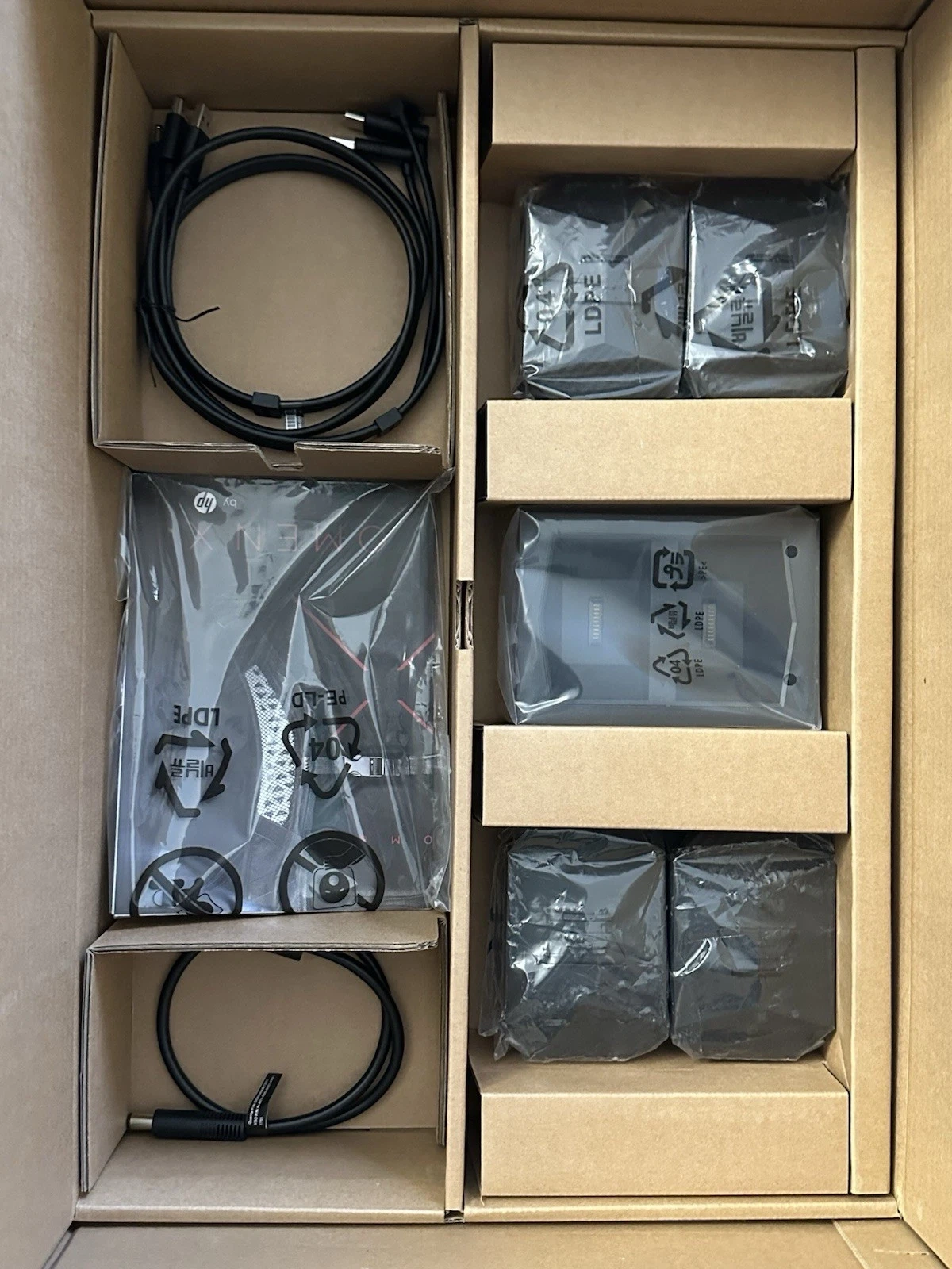 This is an open box HP OMEN VR Backpack Power Kit. It's the complete original set. The item is black and most suitable for gaming.
