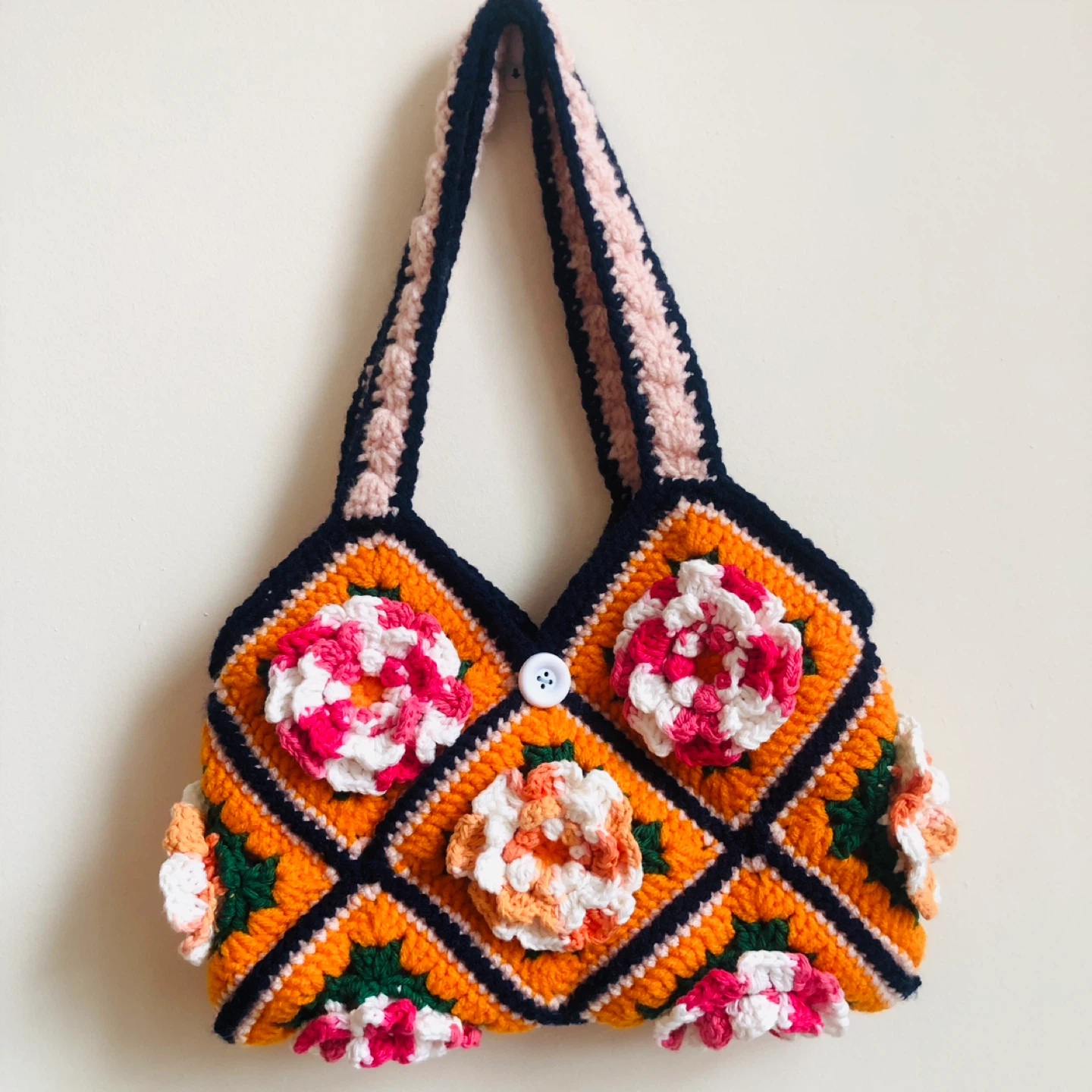 Crocheted 3D Multi-colored Flower Bag