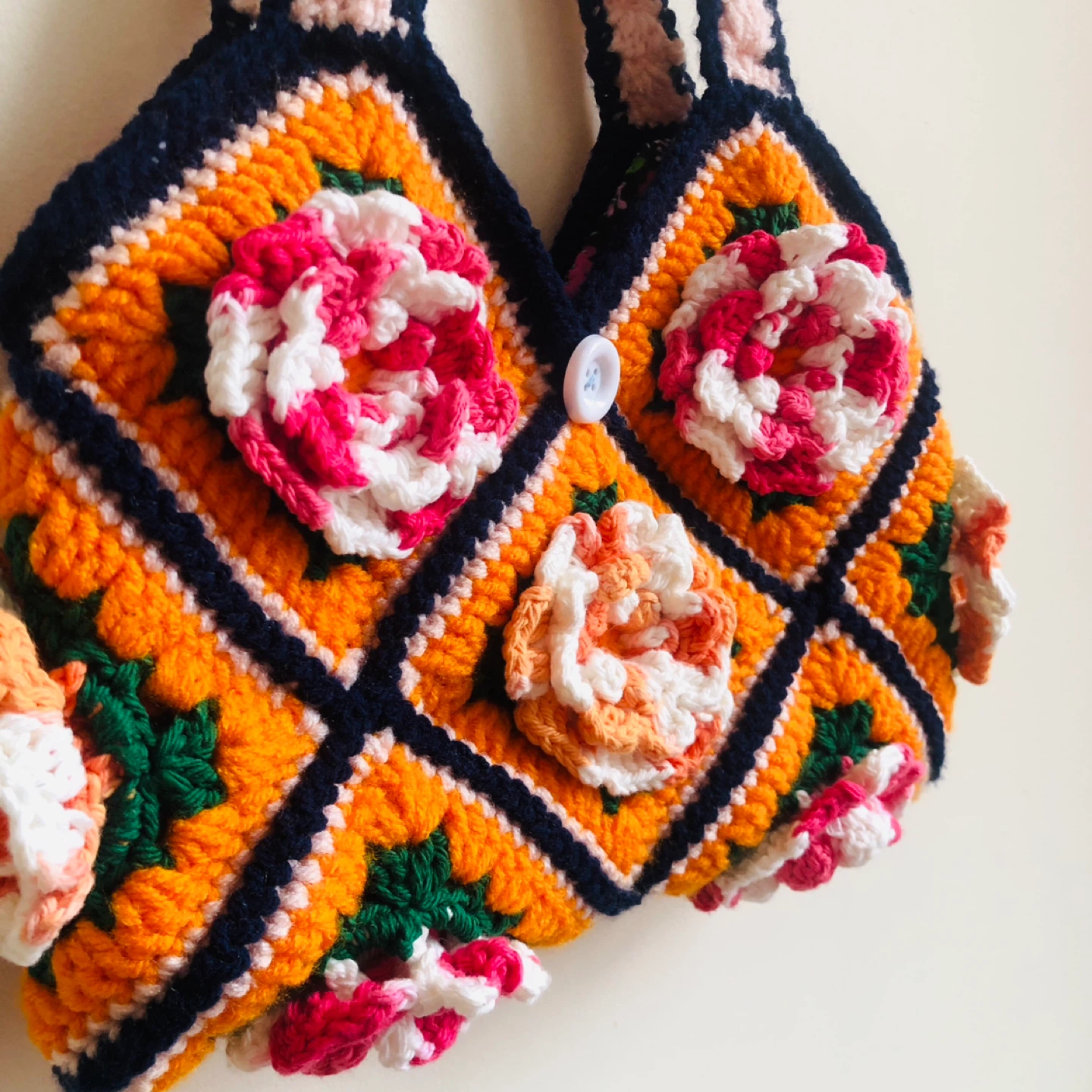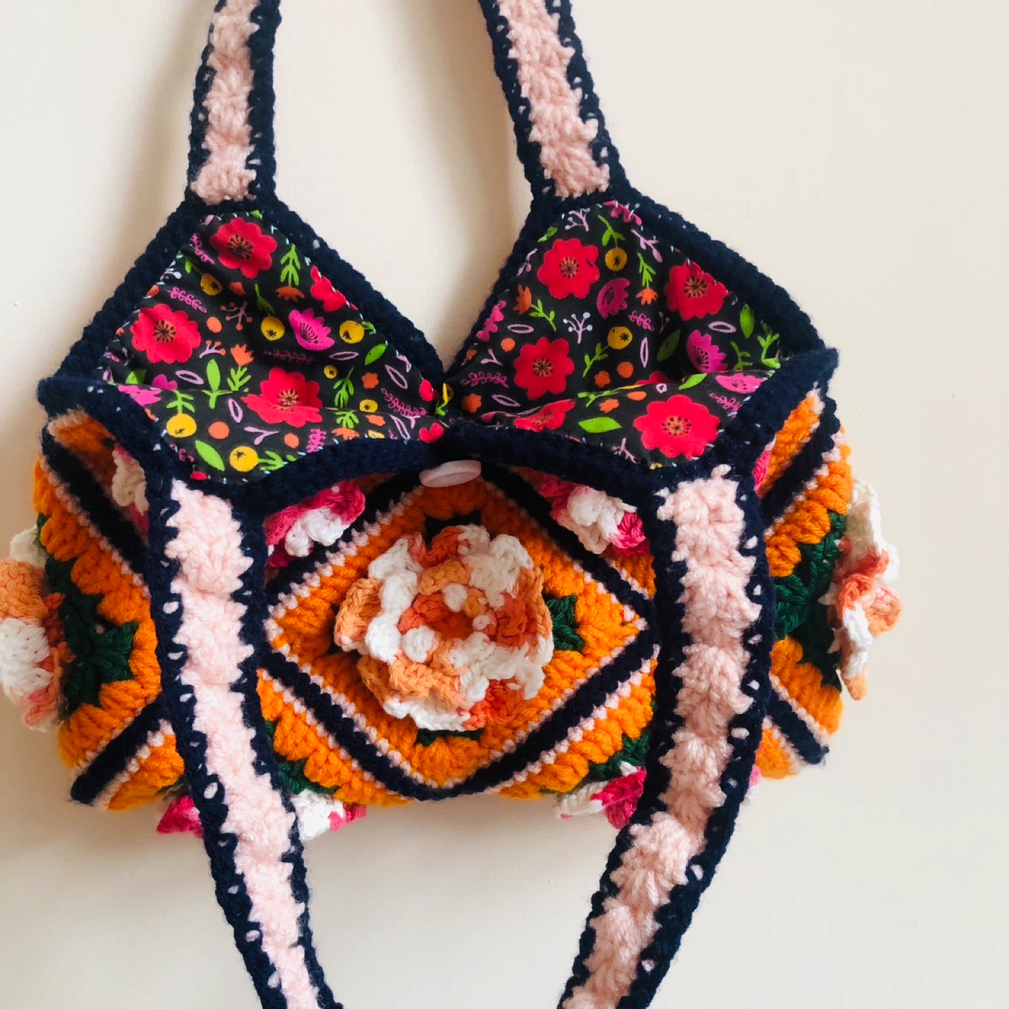 Crocheted 3D Multi-colored Flower Bag