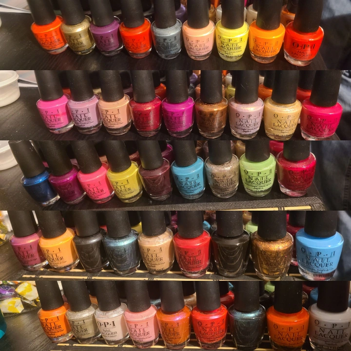 Large collection of OPI nail lacquer. Many colours and shades. Perfect for a salon or nail enthusiast. Sold as a bundle.