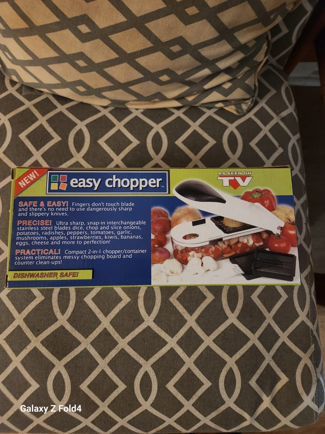This Easy Chopper is a 2-in-1 food chopper and container system. It's safe and easy to use with ultra-sharp, snap-in interchangeable stainless steel blades. This unit is also dishwasher safe for easy clean-ups. It's perfect for quickly dicing, chopping, and slicing various fruits and vegetables.