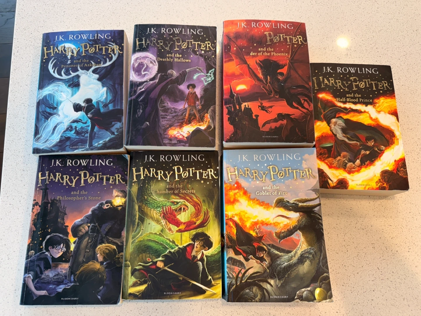 This is a complete set of the J.K. Rowling Harry Potter book series, featuring all seven original titles. These are the paperback editions published by Bloomsbury. They're perfect for any fan looking to collect the full wizarding world saga or start their magical journey.