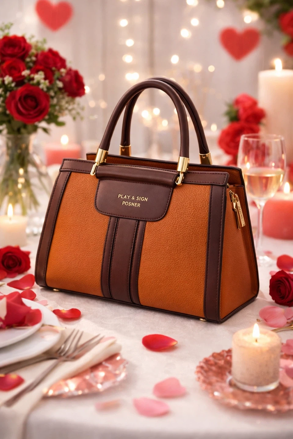 Chic and stylish handbag with a rich textured finish and gold-tone accents. Features a structured design, comfortable top handles, and a spacious interior-perfect for everyday wear or special occasions. A beautiful Valentine's gift.