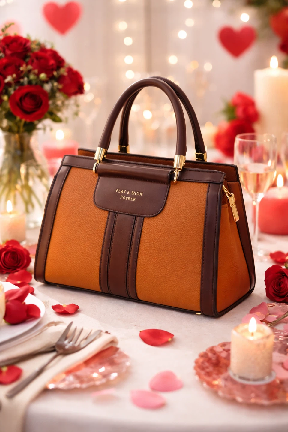 Chic and stylish handbag with a rich textured finish and gold-tone accents. Features a structured design, comfortable top handles, and a spacious interior-perfect for everyday wear or special occasions. A beautiful Valentine's gift.
