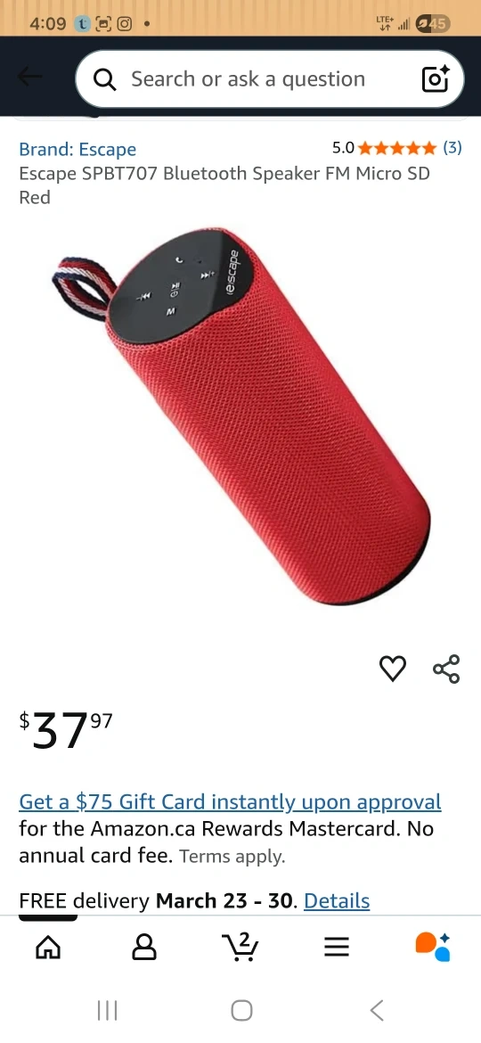 Escape SPBT707 Wireless Fabric Speaker - Red