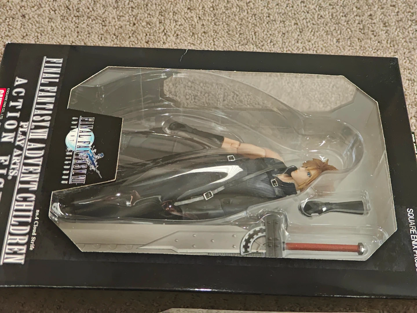 I am selling a Final Fantasy VII Advent Children Play Arts - No. 4 Cloud Strife Action Figures FF 7 in new condition. For sale is a factory-sealed (the tape placed on by the retailer is still on the box) Cloud Strife action figure from the original Final Fantasy VII Advent Children Play Arts line by Square Enix Products Character Toy. This is a rare find in unopened condition, featuring the original retailer seals.