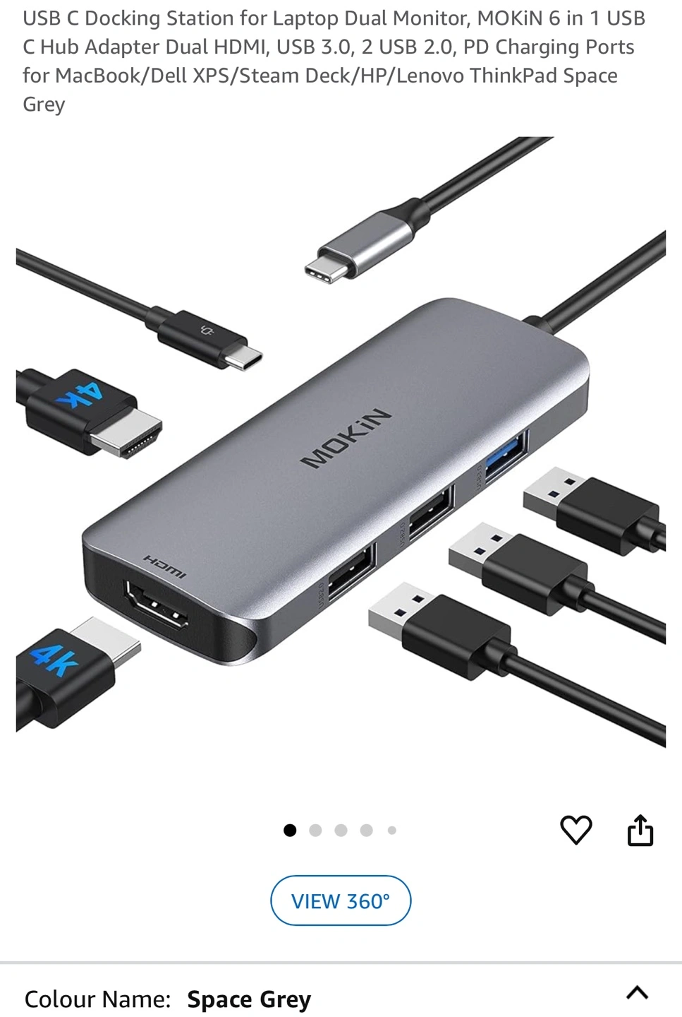 USB C Hub Adapter with 2 HDMI, 3 USB 3.0, PD Charging Ports. Space Grey. Compatible with Mac and windows, used for 5 months with my macbook pro