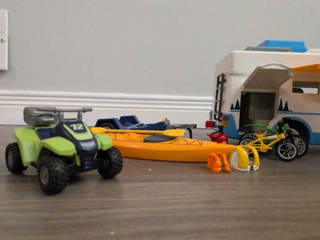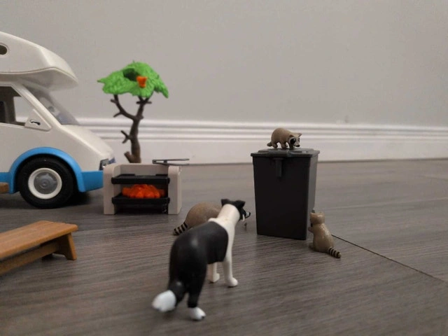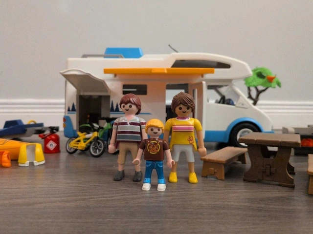 Embark on imaginary camping adventures with this gently used Playmobil Family Camper, a playset ready for hours of creative fun! This comprehensive set includes a fully-equipped camper, a family of Playmobil figures, a grill to cook up tasty make-believe meals, and even some playful raccoons adding a touch of wilderness charm. The set comes with various accessories, promising an engaging play experience. Here are the specifics of what’s included: Playmobil Camper, Playmobil Figures, Assorted Camping Accessories. Imagine the stories you'll create! Don't miss out on the chance to add this set to your collection. It's a steal for endless fun. It's the perfect toy to ignite your imagination.