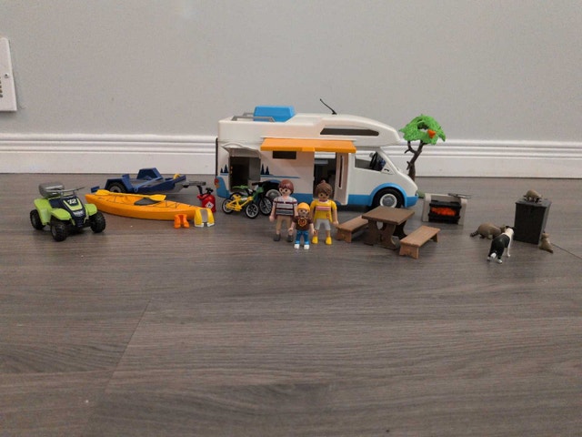 Embark on imaginary camping adventures with this gently used Playmobil Family Camper, a playset ready for hours of creative fun! This comprehensive set includes a fully-equipped camper, a family of Playmobil figures, a grill to cook up tasty make-believe meals, and even some playful raccoons adding a touch of wilderness charm. The set comes with various accessories, promising an engaging play experience. Here are the specifics of what’s included: Playmobil Camper, Playmobil Figures, Assorted Camping Accessories. Imagine the stories you'll create! Don't miss out on the chance to add this set to your collection. It's a steal for endless fun. It's the perfect toy to ignite your imagination.