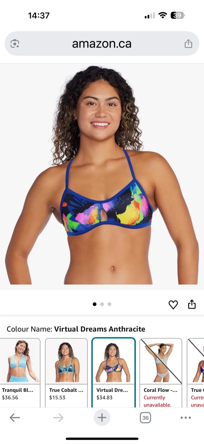 Selling a Speedo swim top from the Vibe Collection! It's a size XS and features a fun, colourful design. Made from recycled plastic bottles, it's a great choice for swimming or lounging by the pool,still in the box