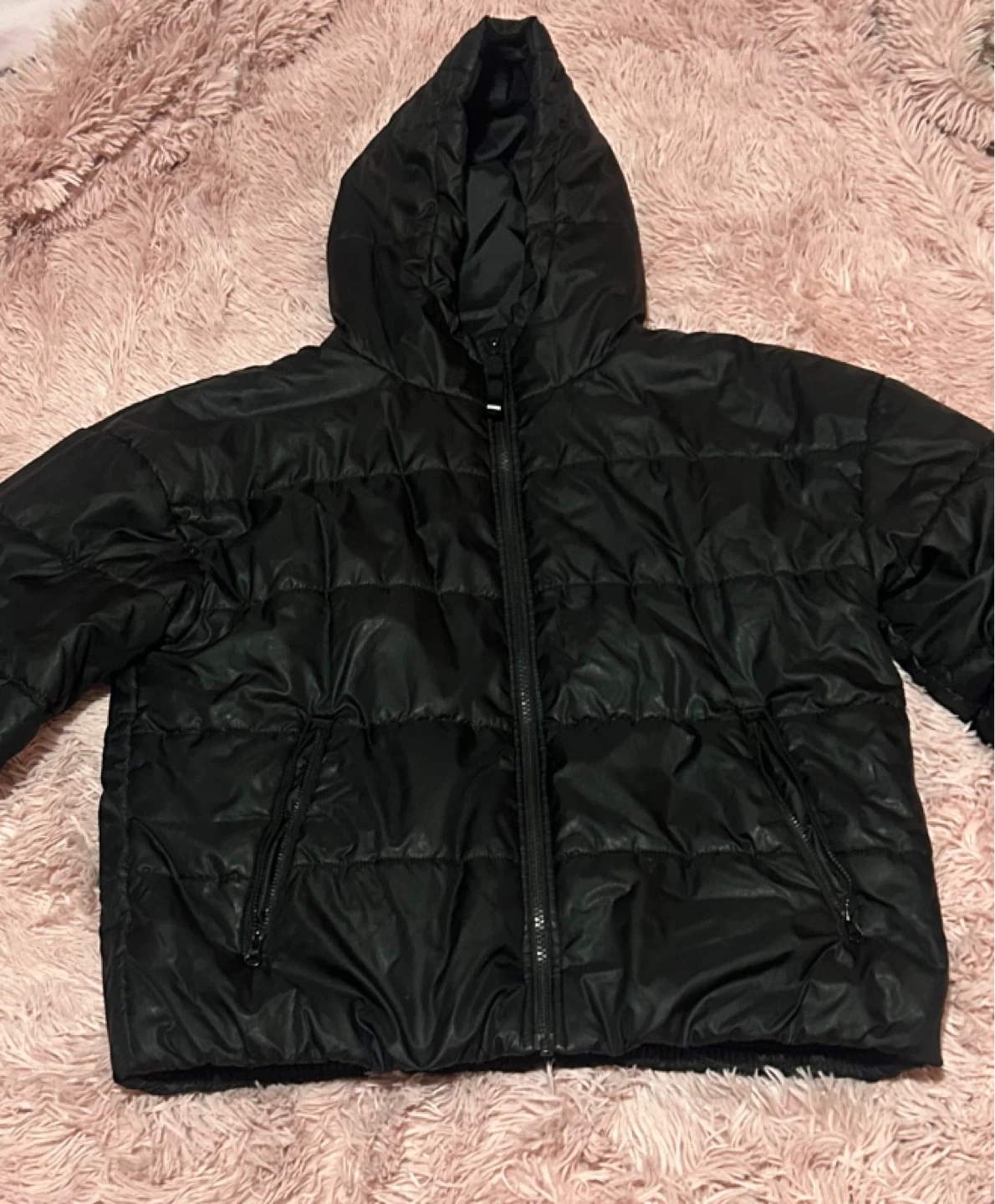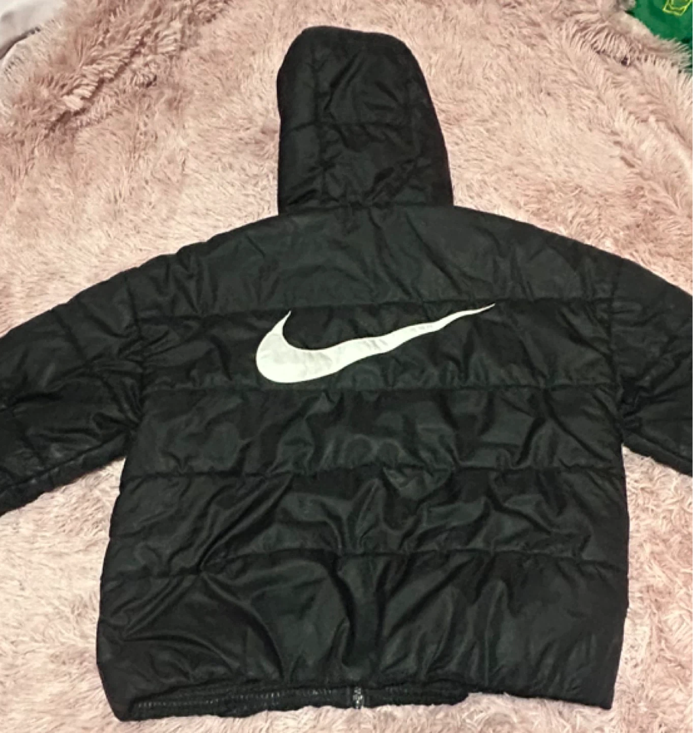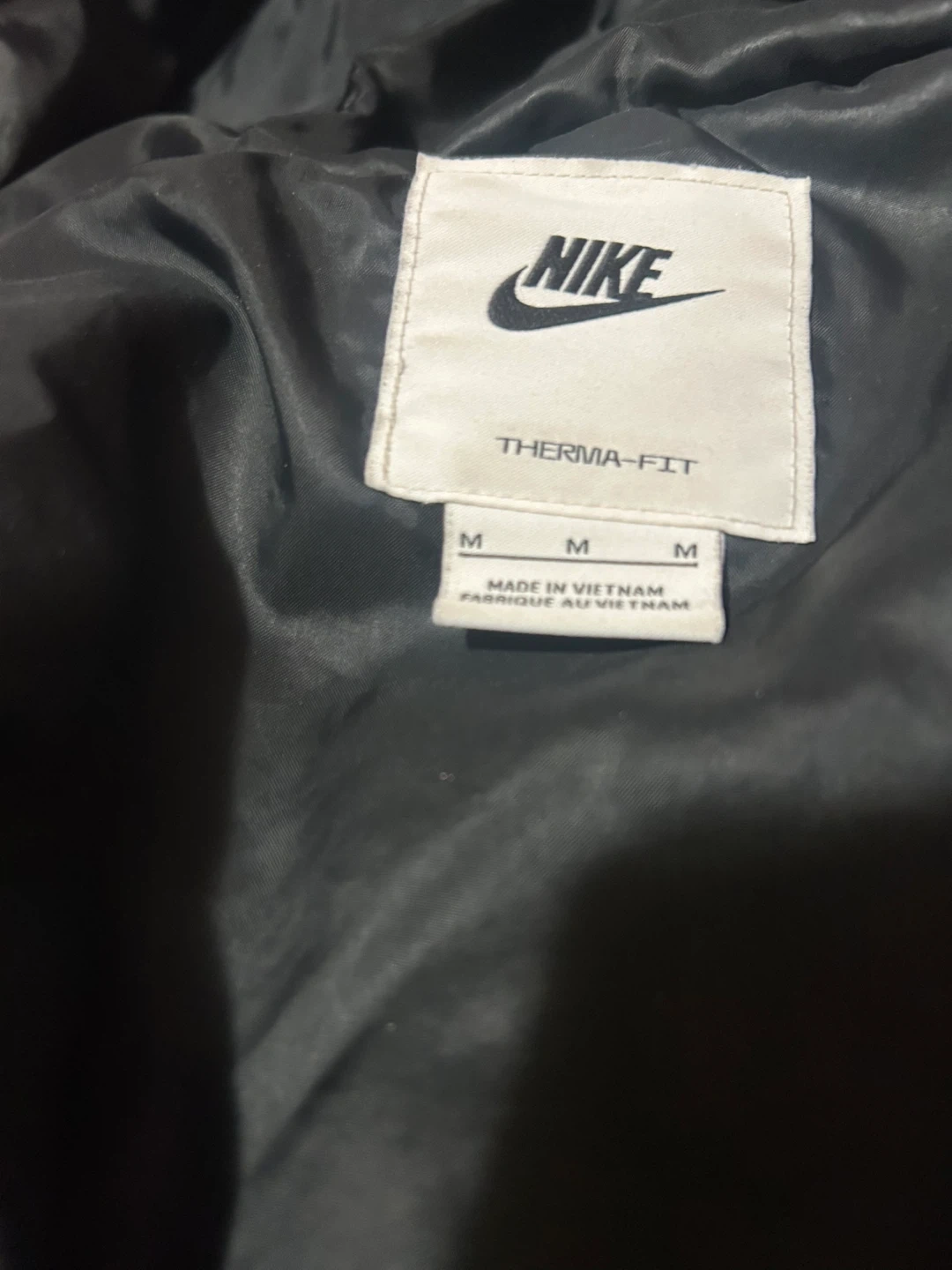 Black Nike Therma-Fit unisex puffer jacket with a hood. It's a size medium. Perfect condition worn maybe twice!