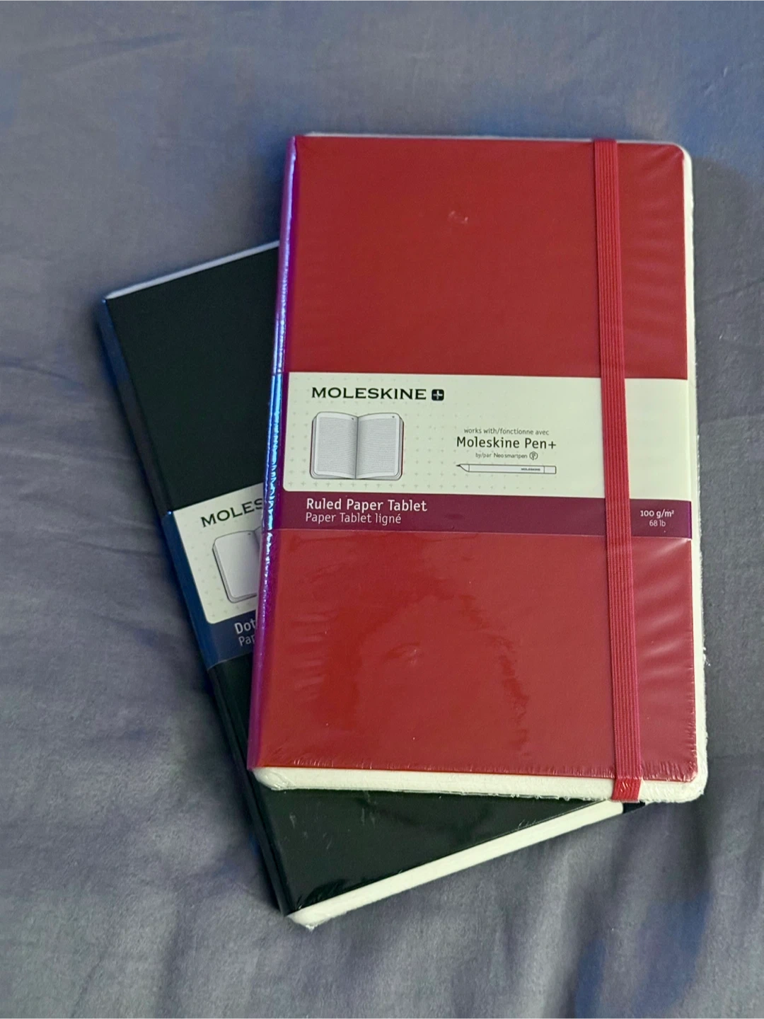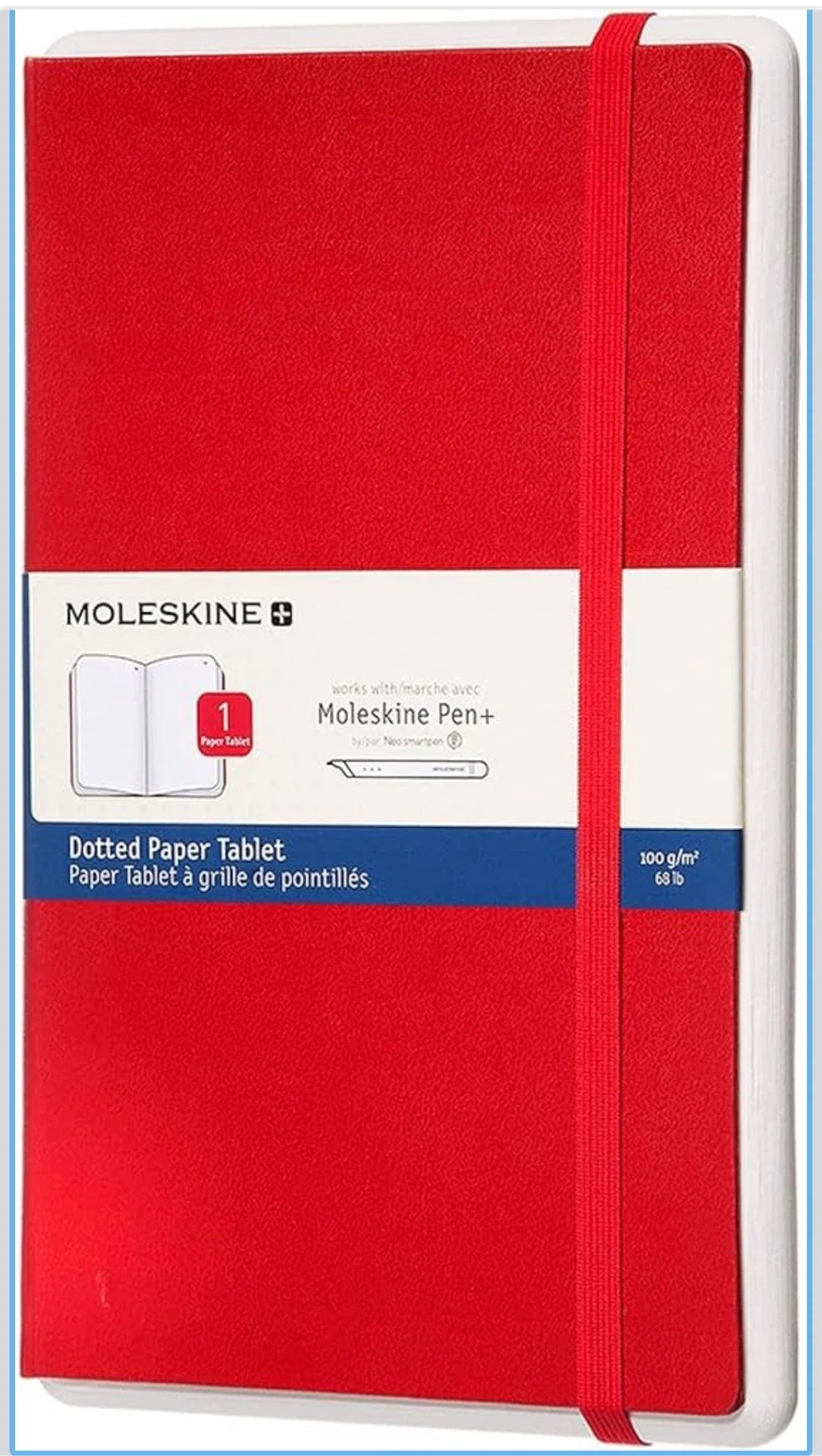 Brand new, sealed item. Smart notebook compatible with Moleskine Ellipse pen (sold separately). One red available (ruled): one black (dotted). Both large, 5” x 8.25”