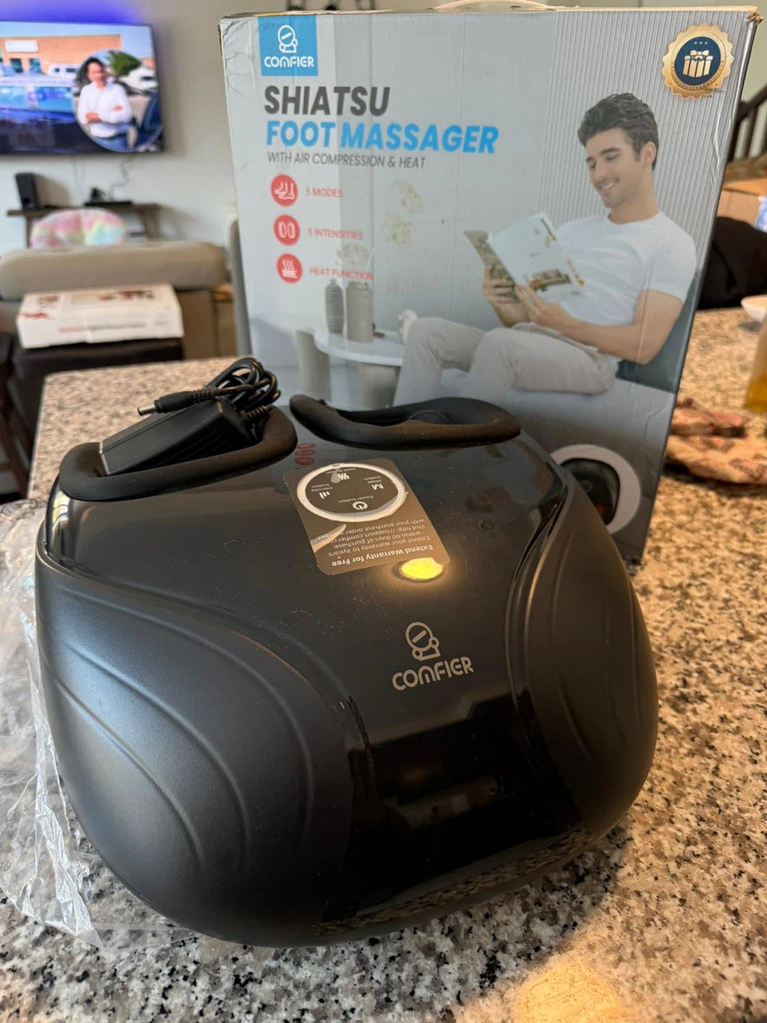 Selling a Comfier Shiatsu Foot Massager with air compression and heat! It has 3 modes and 3 intensities for a customizable experience. The box is included too!