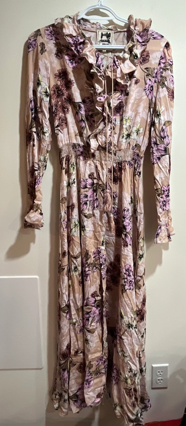 Jaase Boho Pink Floral Maxi Dress sz M