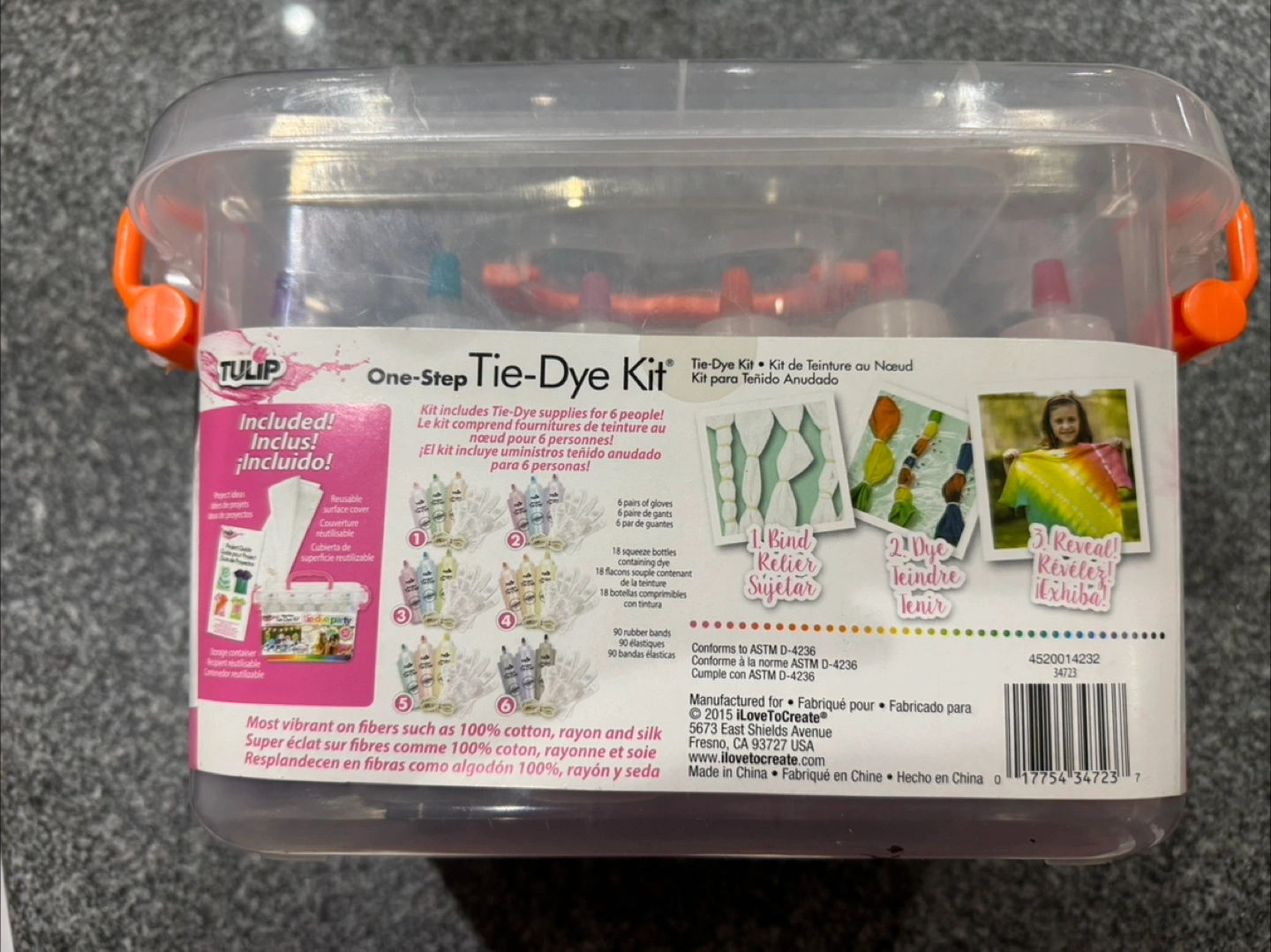 Get ready to unleash your creativity with this Tulip One-Step Tie-Dye Kit! Perfect for tie-dye parties and other fun projects. The kit includes supplies for up to 6 people and comes with 123 pieces. Includes: