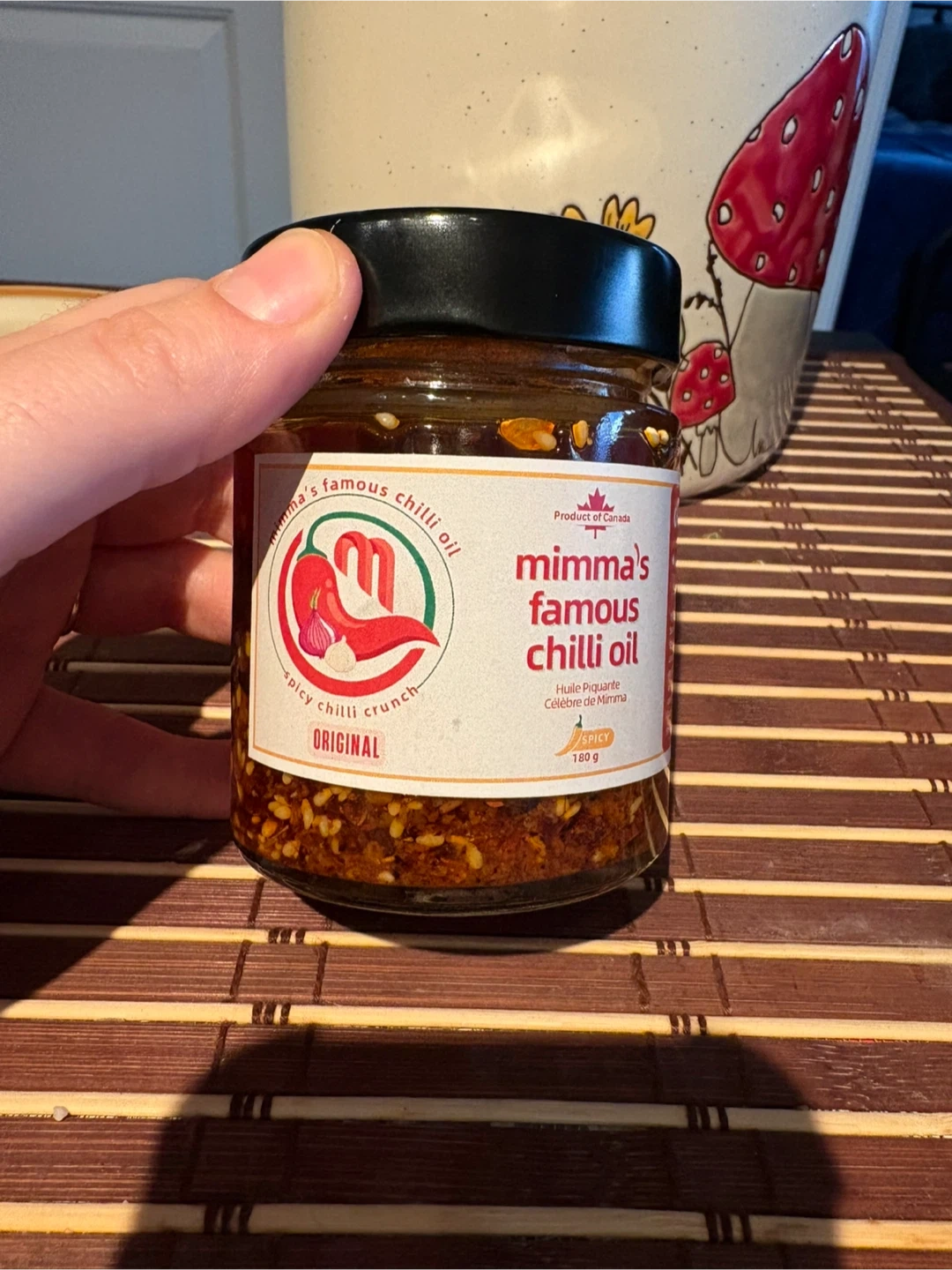 Buy & SellChilli OilChilli Oil$4Chilli oil sealed in jar. Expires May 2026. Pickup near Sherbourne and Adelaide St East or sometimes at some TTC stations.ConditionNewWHERE TO MEETHomeView MapSELLERverifiedMarikaGarden District85275 reviews1 chats·2 favorites·11 viewsSEND CHAT TO SELLERHi Marika! I’m interested in your listing.Hi Marika! I’m interested in your listing.Get the Karrot app to chatSign In to chat