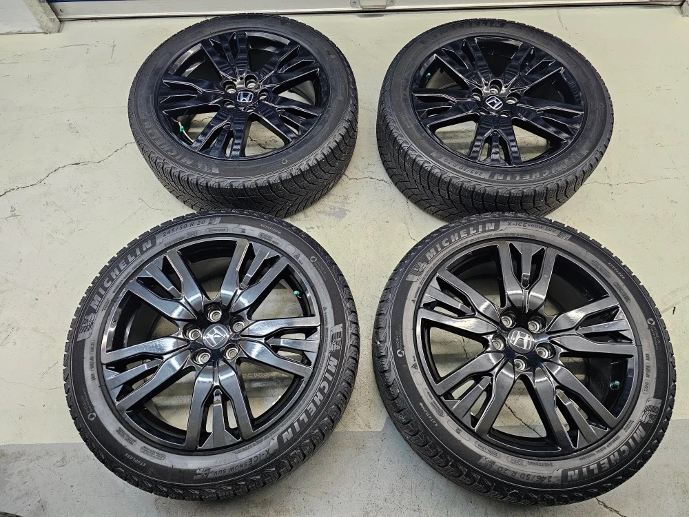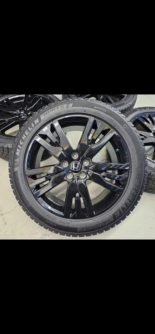 Set of 4 20" Michellin X-ICE winter tires on replica rims 245/50/R20 used on Honda pilot/passport. Rims and tires are in good shape, no bend, no cracks, minor curb rash on 1 rim. Tires are almost brand new with approximately 90% thread left on them, no tpms