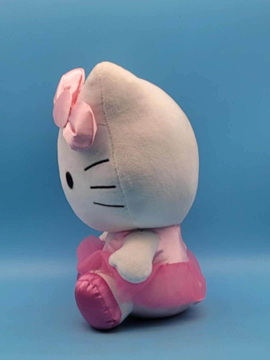 Hello Kitty dressed in a pink ballerina outfit, with its adorable pink tutu and ballet shoes and a matching bow, making it a perfect gift for fans of the iconic character.