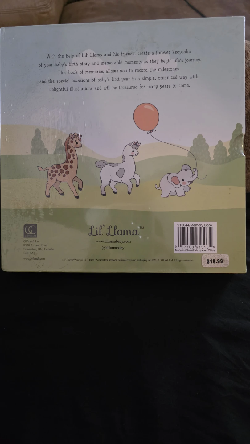 I'm selling a brand new Lil' Llama Baby's First Year keepsake book! It's a sweet book to record all those precious first moments and milestones. Originally bought for $19.99, it's ready to help you capture your baby's journey