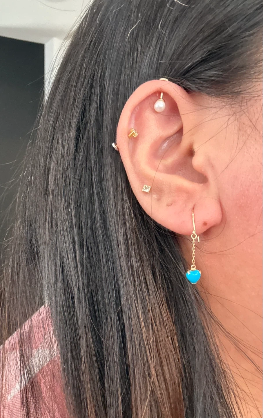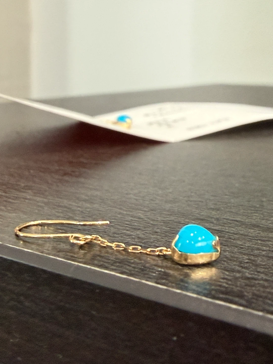 18K YG Turquoise Heart Dangle Earrings