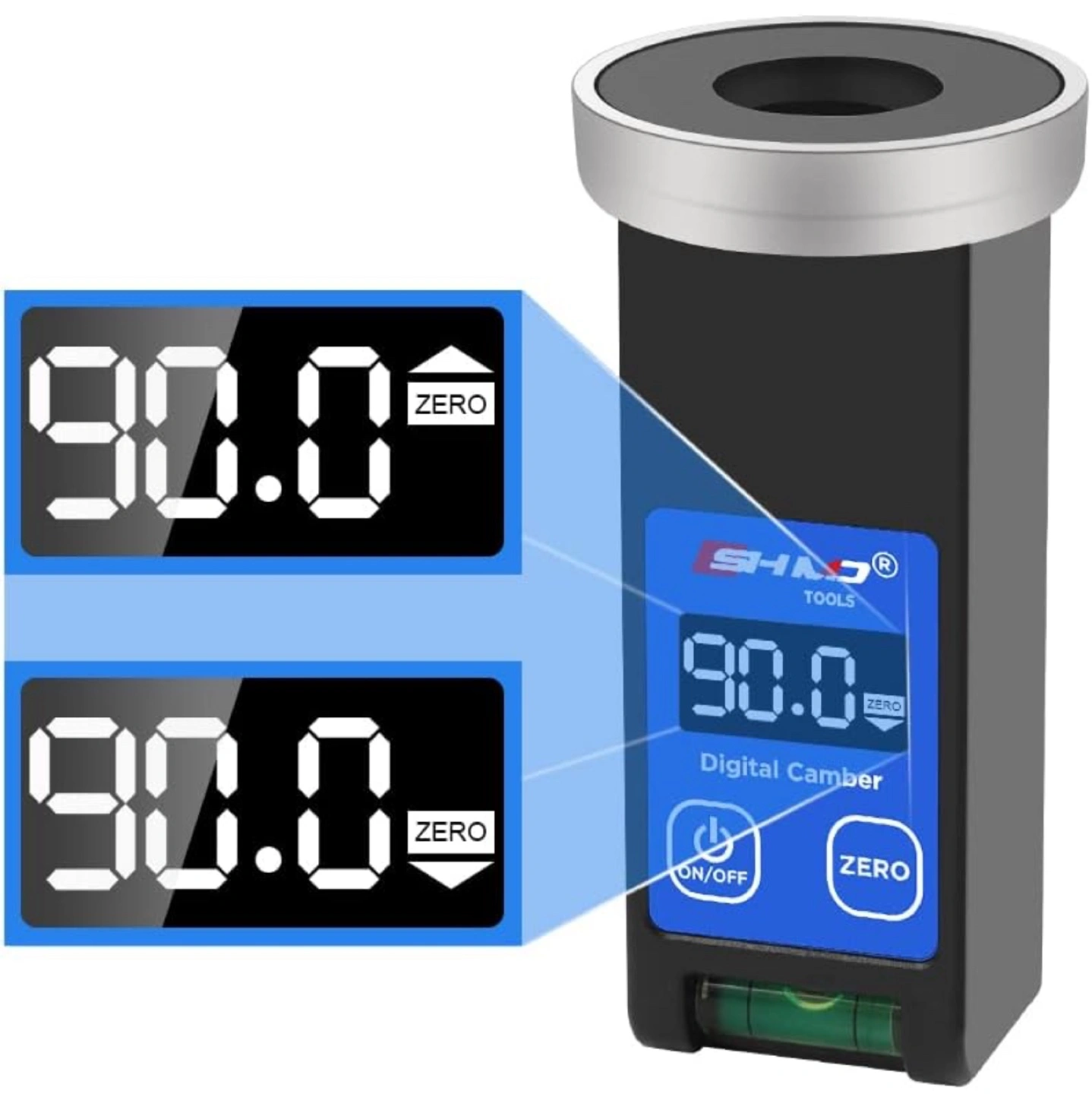 This is a digital caster camber gauge. It features an accurate digital LCD display and a wide range measurement of +90°. It also has a powerful magnet base and bubble design for easy positioning. It's wear-resistant and easy to use!