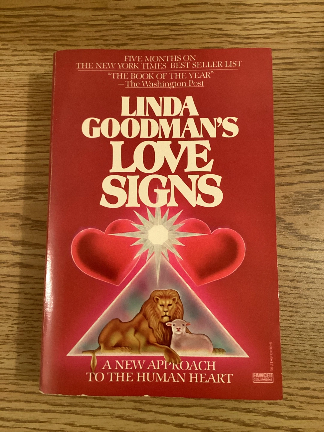 Linda Goodman's 'Love Signs' book. It explores astrology and relationships. A fascinating read for anyone interested in understanding love through the zodiac, owned and read by only one person.