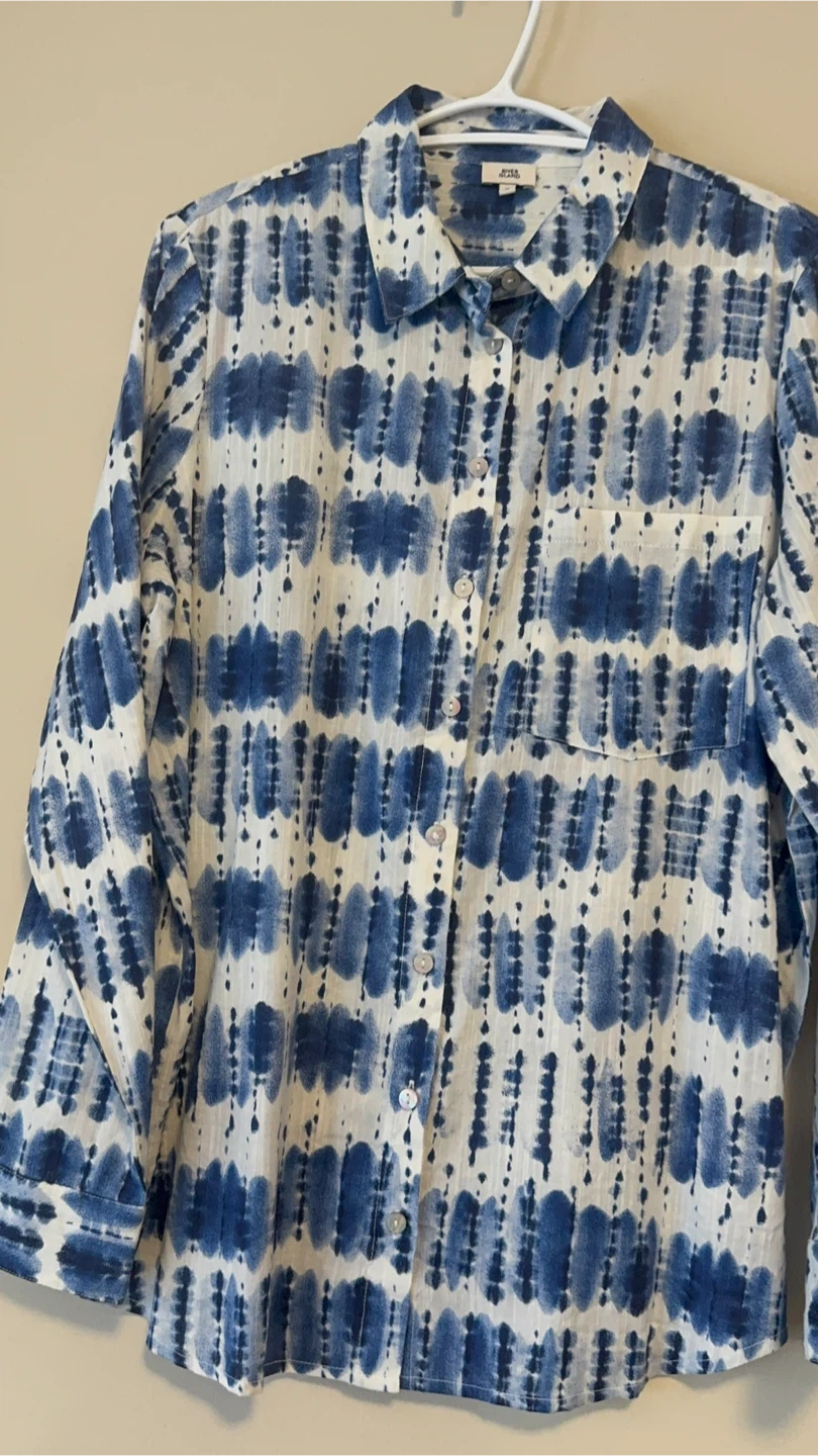 River Island Blue & White Tie-Dye Button-Up Shirt - Size 12