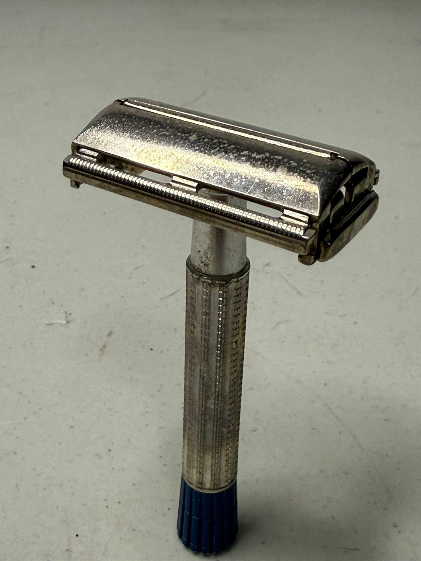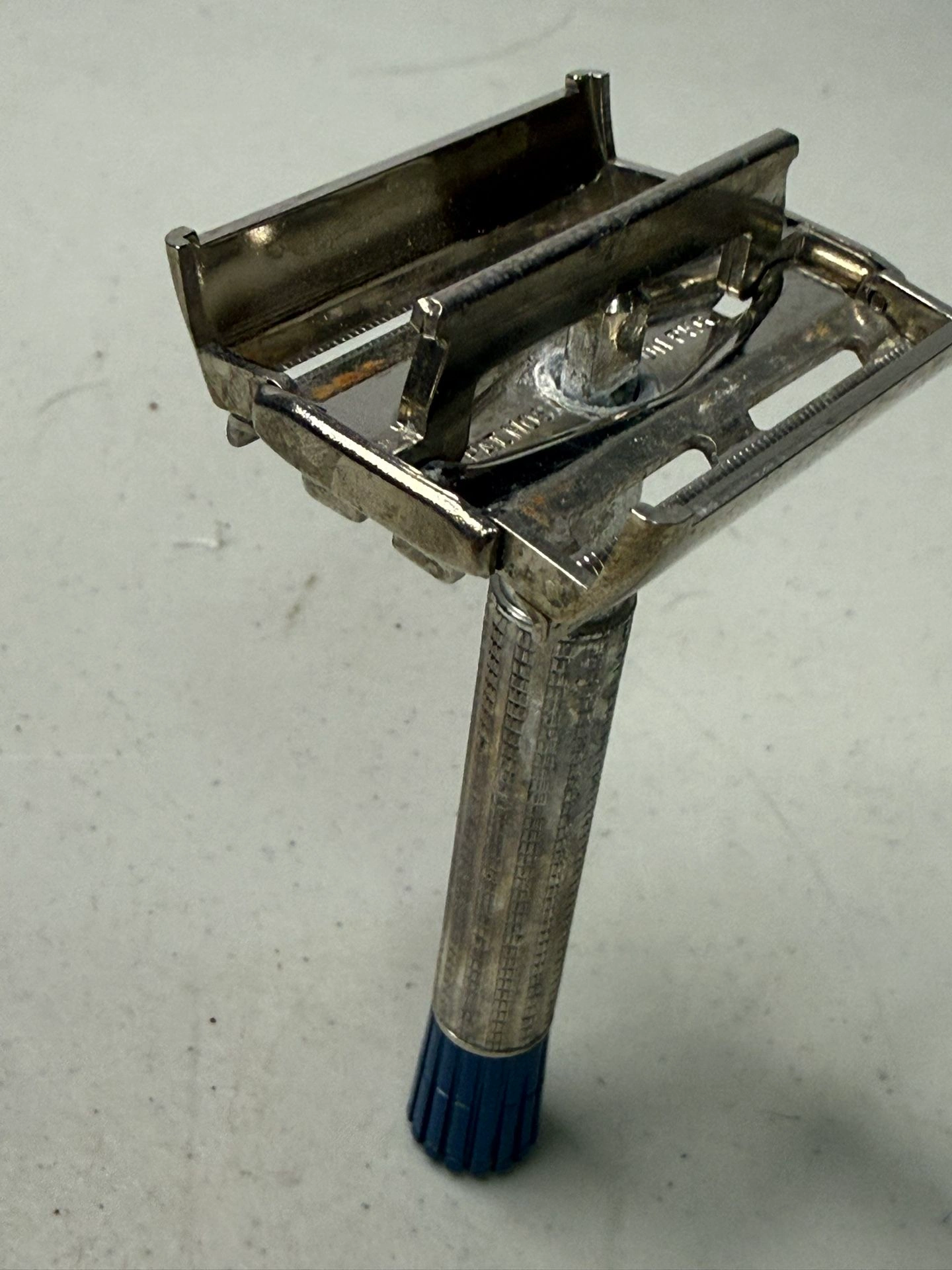 Vtg 1956 B3 Gillette Blue Tip Super Speed DE Safety Razor