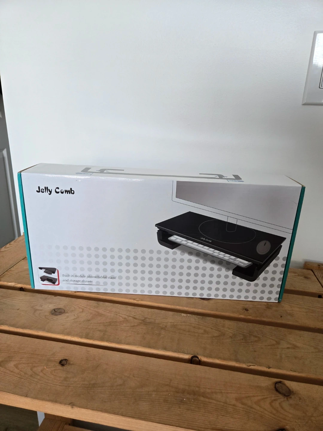 This Jelly Comb monitor stand has a metal construction and supports loading up to 25 kg. It features a built-in mobile phone/tablet stand and storage drawer. Dimensions are 380 x 200 x 80 mm. Perfect for organizing your desktop space!