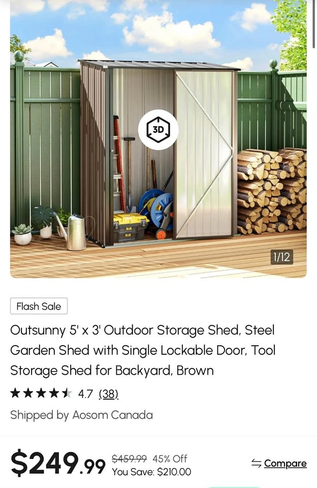1 / 21 / 2Buy & Sell5' x 3' Outdoor Storage Shed with Lockable Door5' x 3' Outdoor Storage Shed with Lockable Door$235Brand new in the box. Pick up at Terwillegar.WHERE TO MEETCheck LocationView MapSELLERnissS Terwillegar190 reviews0 chats·0 favorites·27 viewsSEND CHAT TO SELLERHi niss! I’m interested in your listing.Hi niss! I’m interested in your listing.Get the Karrot app to chatSign In to chat