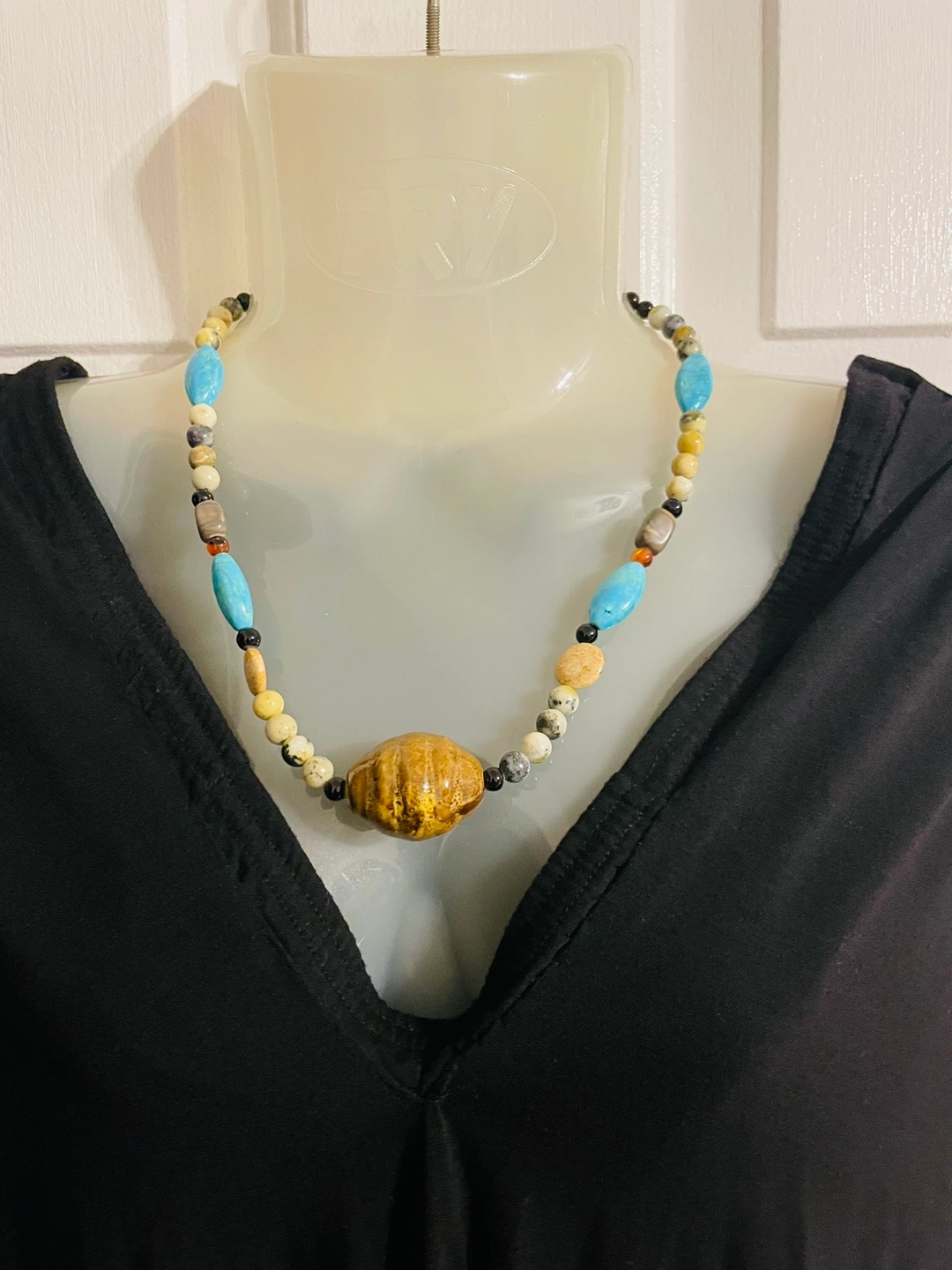 Retail price $129.00 Unique statement piece. Beautiful beaded necklace with various stones. Features Genuine agates, jaspers, onyx & created turquoise. Clasp closure.BC 2005791