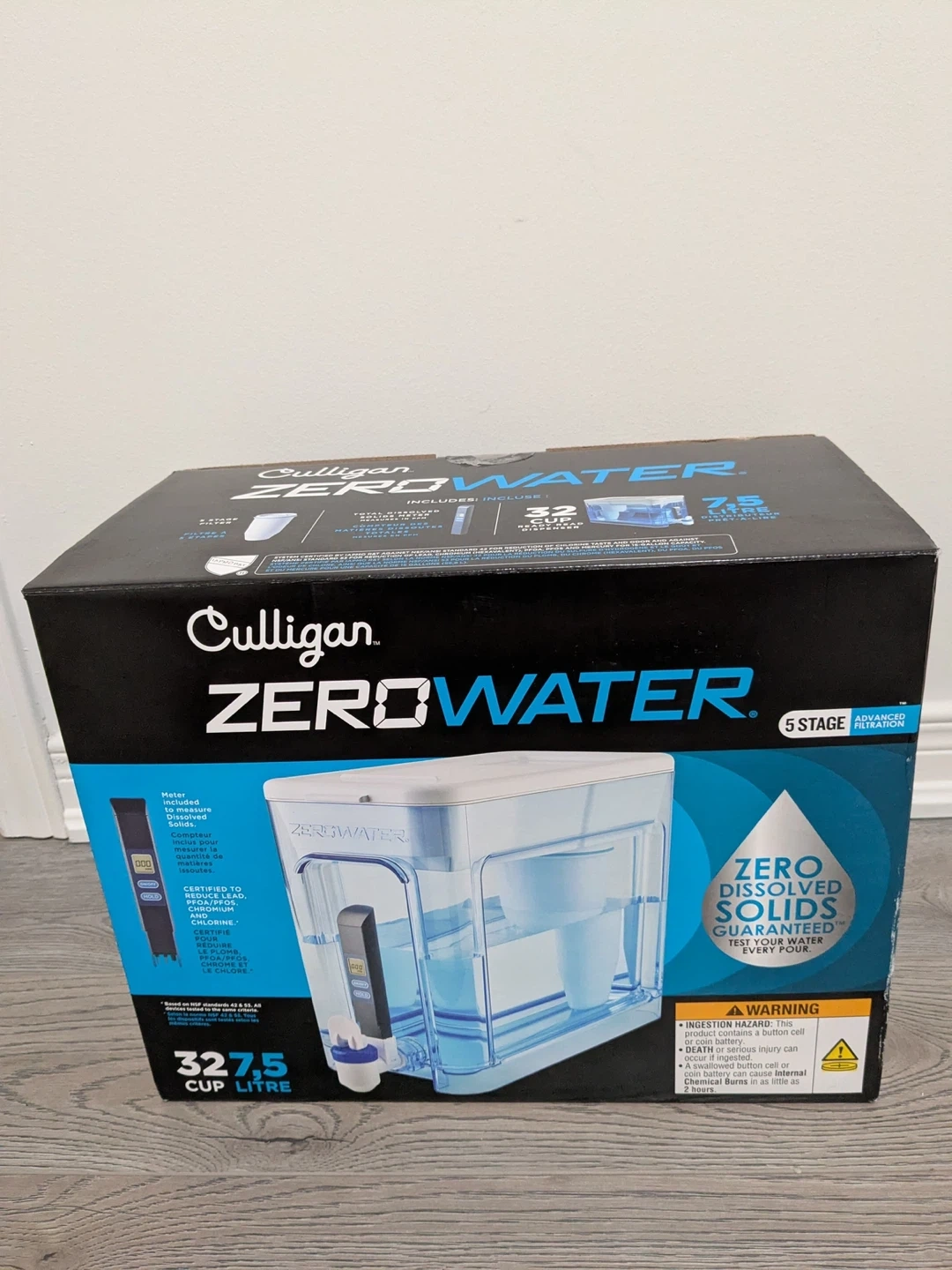 Culligan ZeroWater filter with BRAND NEW Filter Cartridge. Properly CLEANED and STERILISED. The product has been REBOXED IN IT’S ORIGINAL PACKAGING. It has only been used 4-5 times and has mostly been sitting since we bought it.