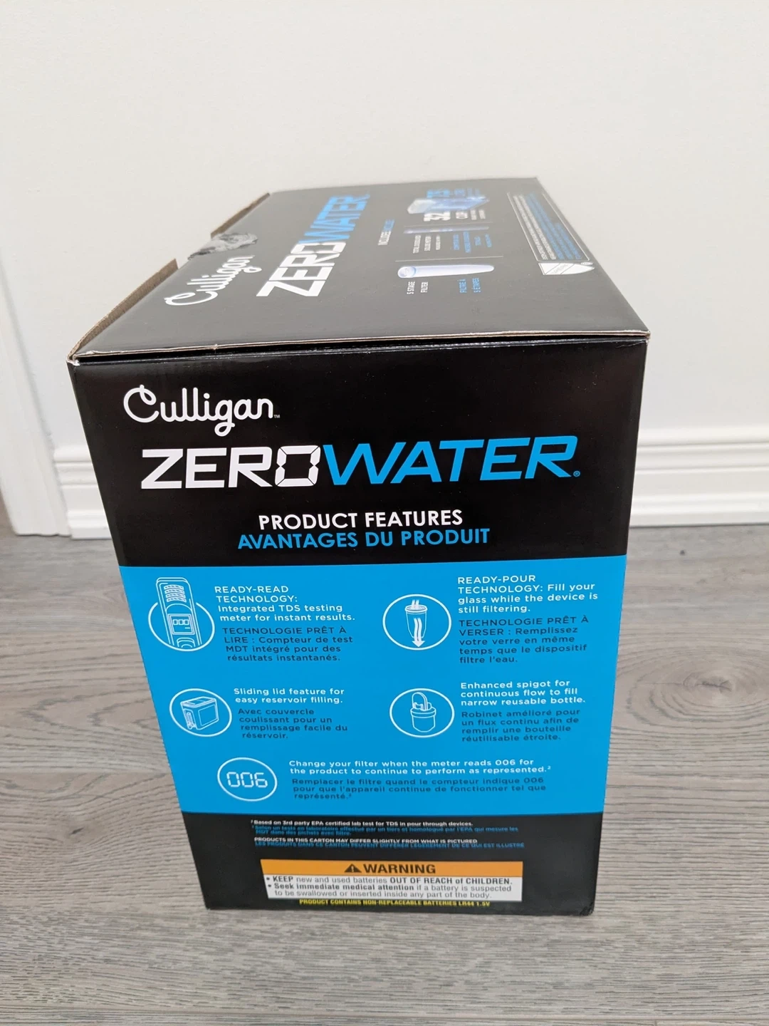 Culligan ZeroWater filter with BRAND NEW Filter Cartridge. Properly CLEANED and STERILISED. The product has been REBOXED IN IT’S ORIGINAL PACKAGING. It has only been used 4-5 times and has mostly been sitting since we bought it.