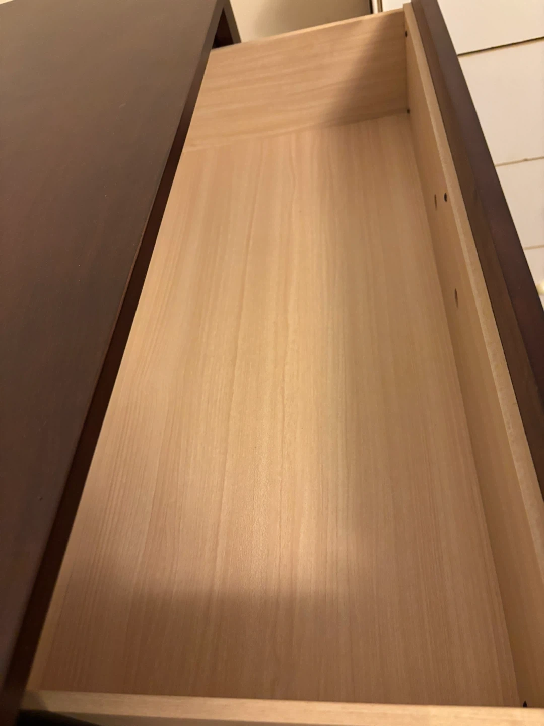 35.5” wide 18” deep by 49.5” tall brown dresser