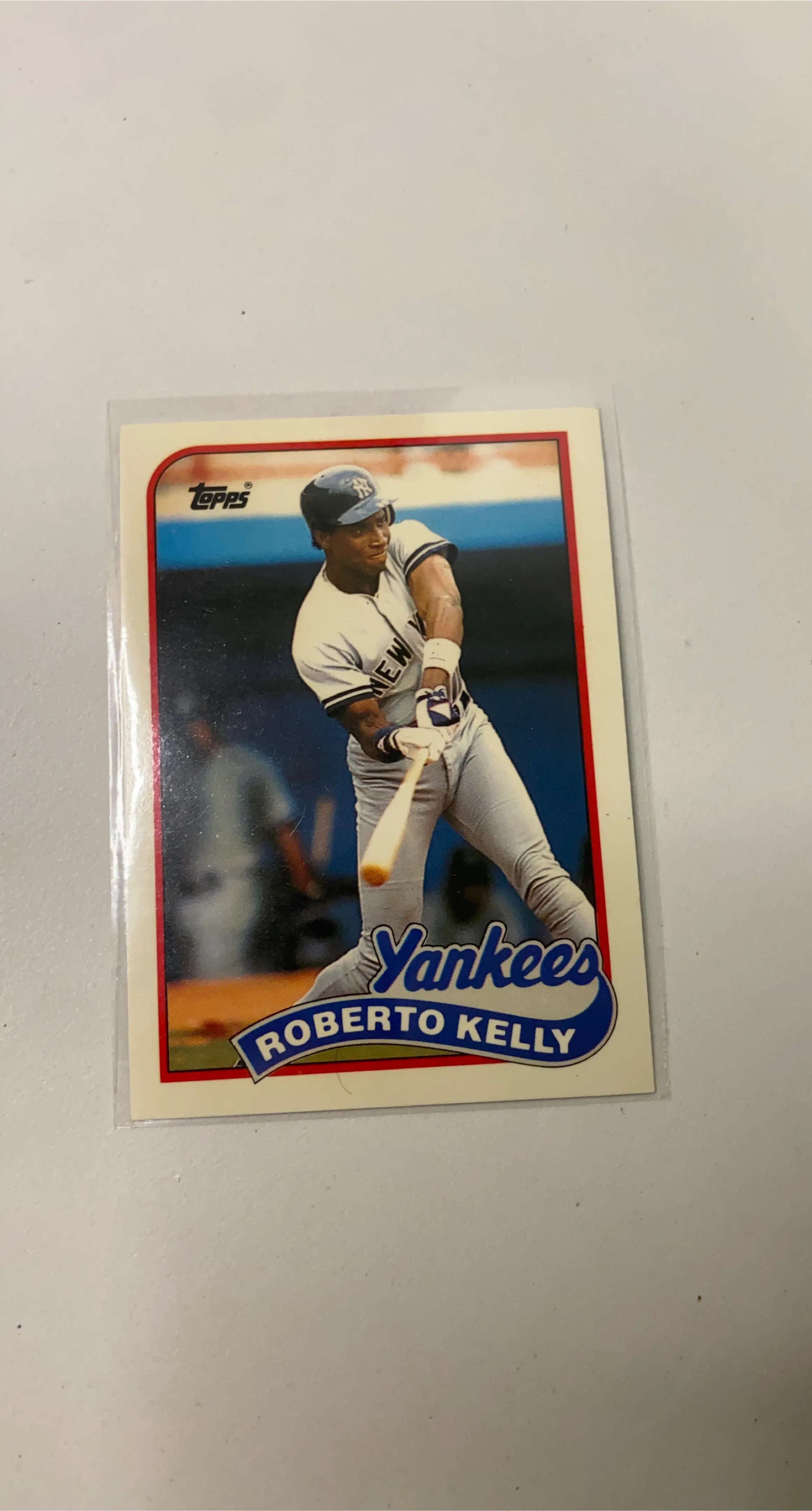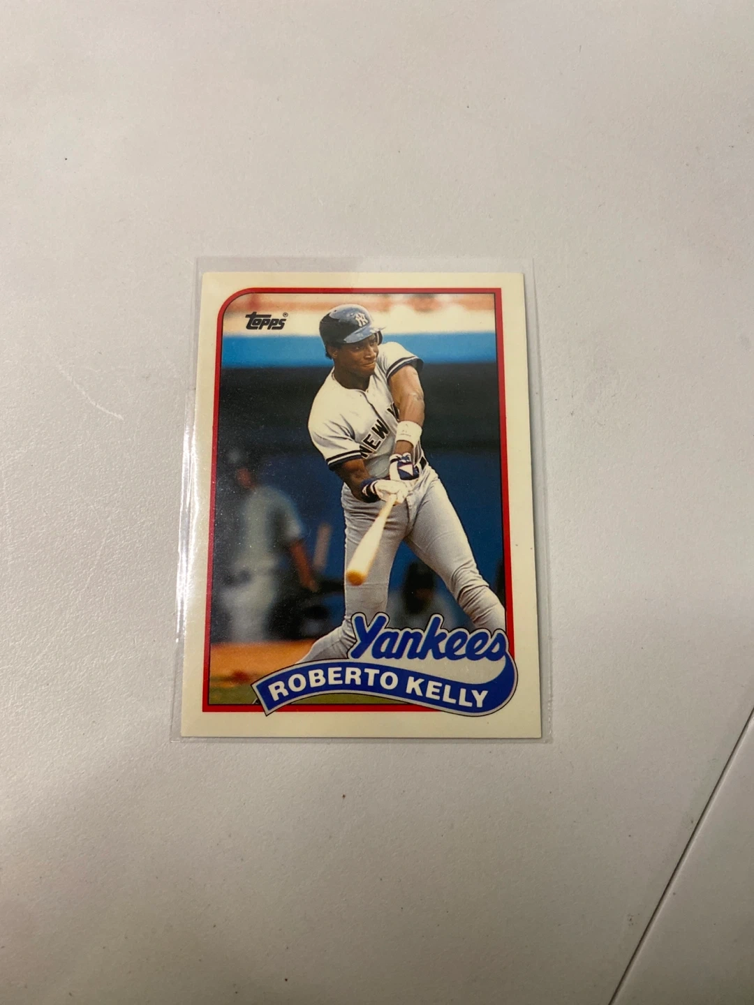 This is a 1989 Topps Tiffany baseball card featuring Roberto Kelly of the New York Yankees. The card is in good condition and includes his stats from his minor league career. It's a great addition for any baseball card collector!