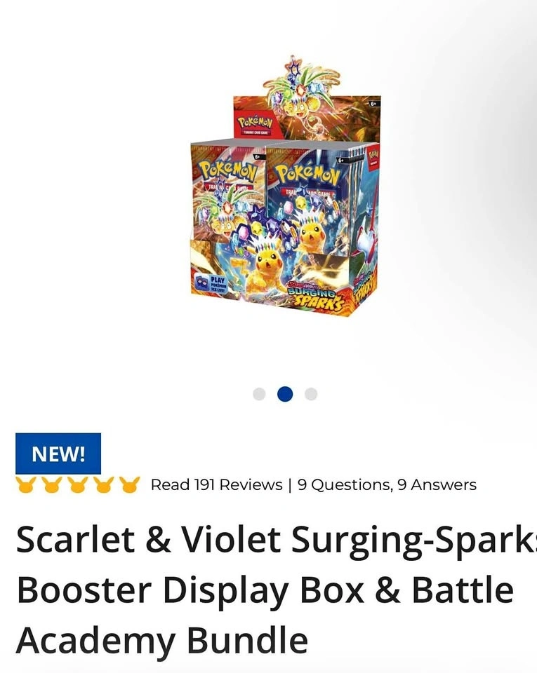 SEALED Pokémon Center Surging Sparks Booster Box. Order confirmed and will be delivered by Feb 15th. $20 non-refundable deposit required. Battle Academy for an extra $20.