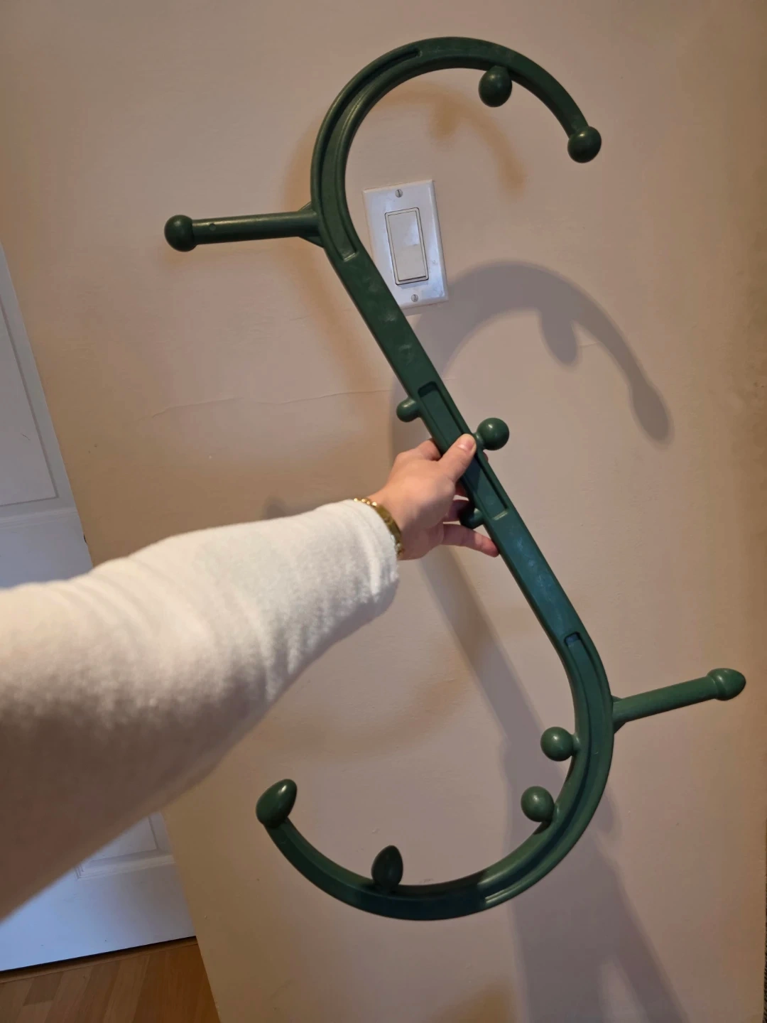 Design: Dual-hook S-shape with 11 numbered knobs to guide users on which point to use for specific body parts.