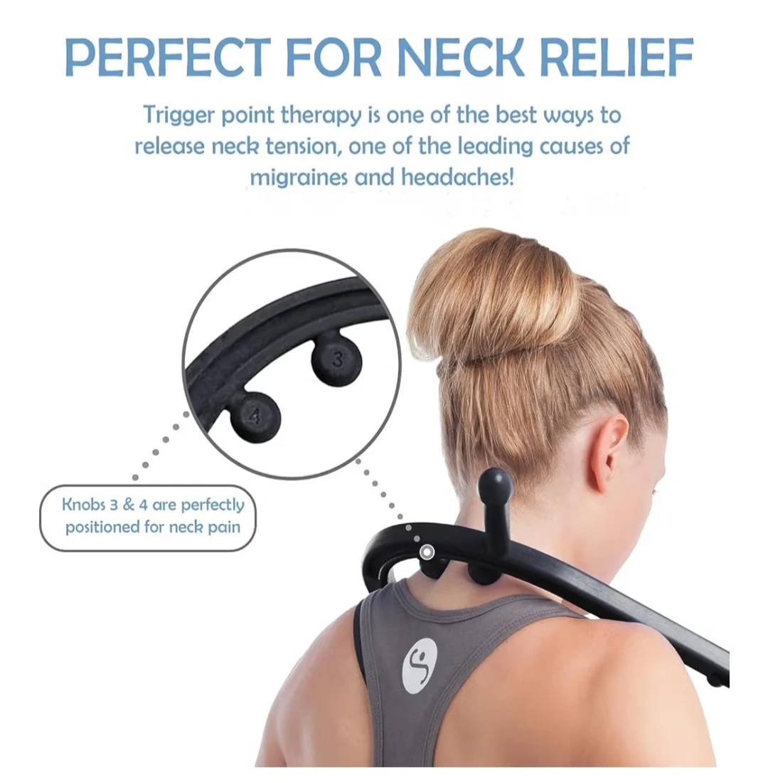 This self-massage tool helps relieve neck and muscle tension. It features multiple knobs for trigger point therapy. Use it for head to toe muscle relief!