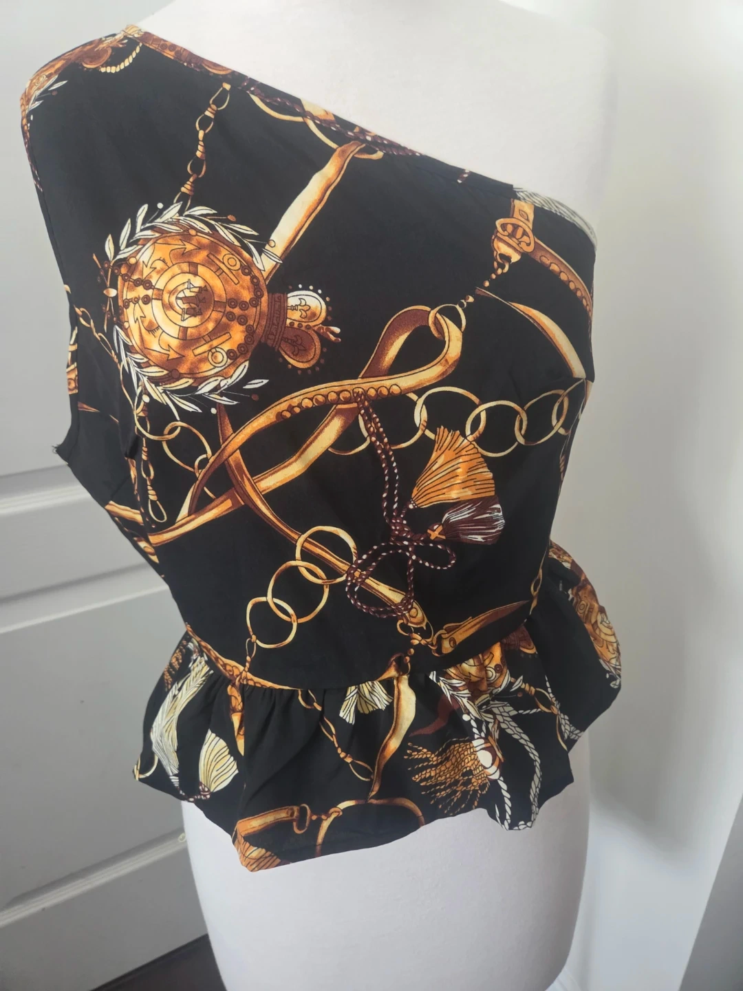 Buy & SellOne Shoulder Print Peplum TopOne Shoulder Print Peplum Top$3Black one-shoulder top with a bold chain and tassel print. It's designed with a peplum hem. Lightweight fabric.ConditionNewSizeSWHERE TO MEETCheck LocationView MapSELLERCammyWexford100 reviews0 chats·1 favorites·22 viewsSEND CHAT TO SELLERHi Cammy! I’m interested in your listing.Hi Cammy! I’m interested in your listing.Get the Karrot app to chatSign In to chat